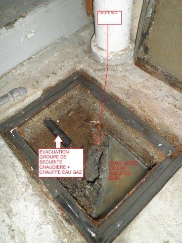 Problème: un trou a été fait sur le tube d'évacuation principale en fonte,