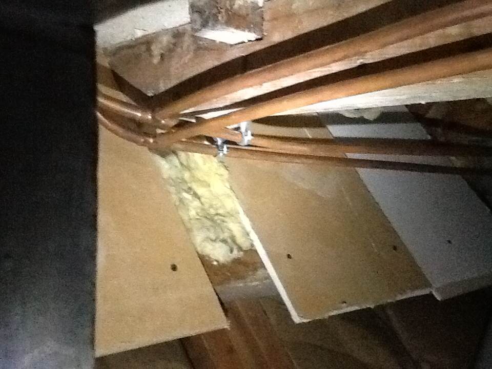 - Je dois aussi braser deux tés dans le sous-toit, comme on le voit dans l’autre photo. Quelles précautions sont à prendre pour ne pas incendier la laine de verre ou le bois? C’est vraiment un espace petit et inconfortable.