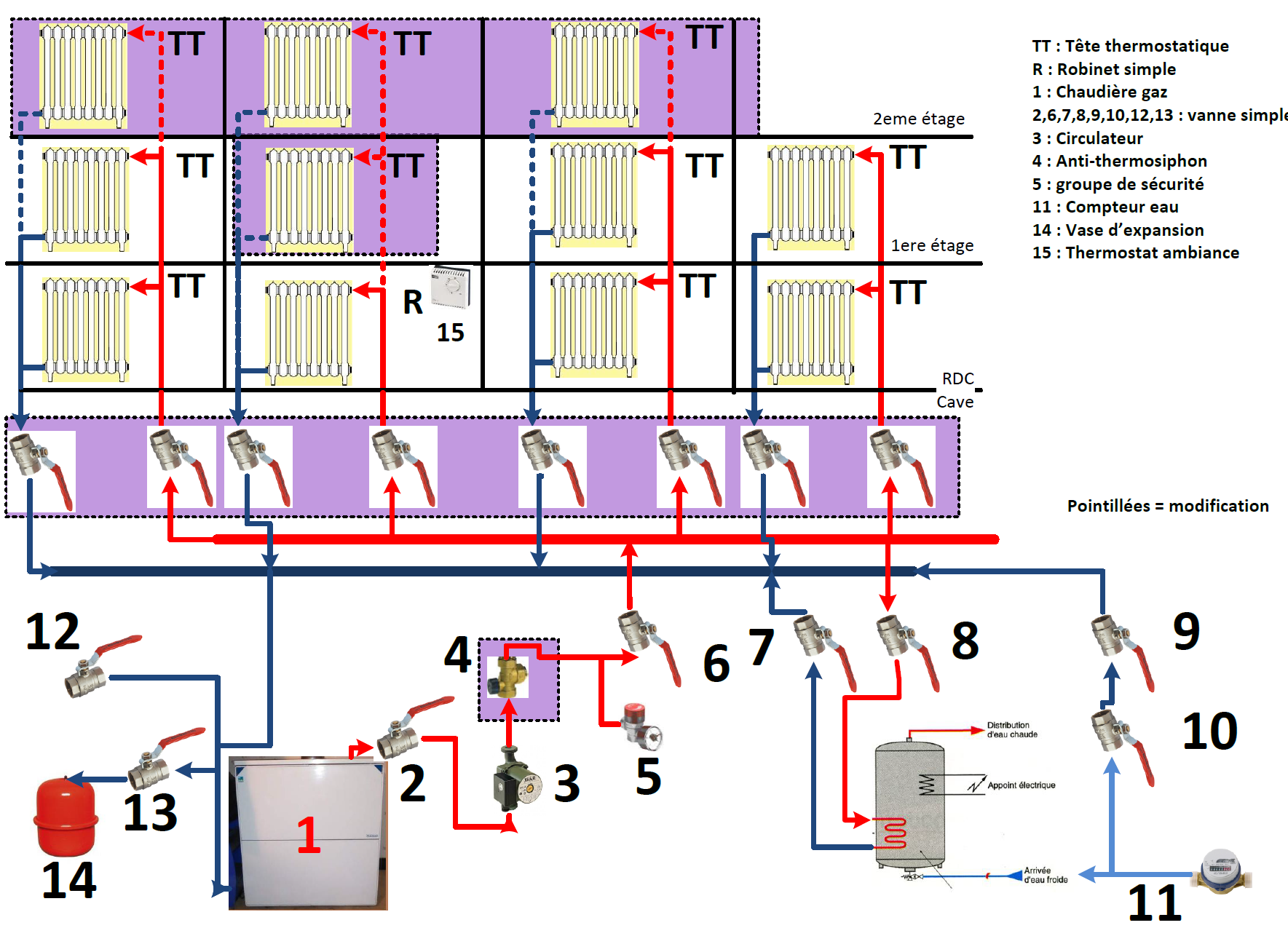 - 5 : Est-ce si je rajoute une vanne 3 voie motorisé entre au dessus de la vanne 6 et le retour d'eau de ma chaudière?