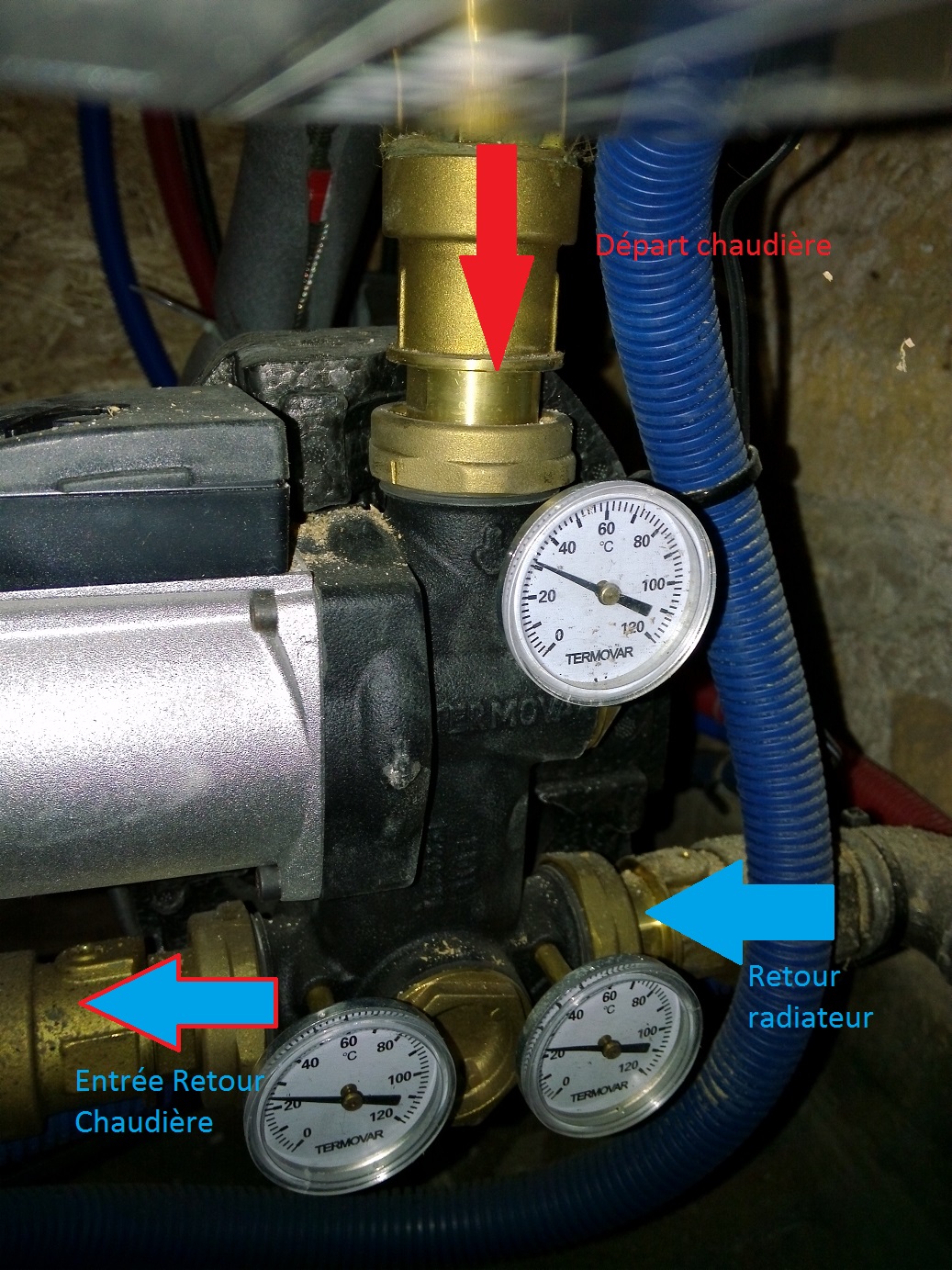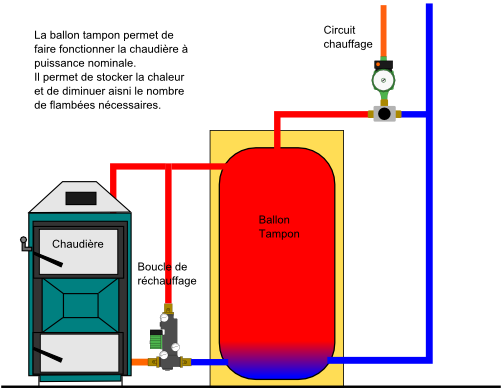 La chaudière enclenche le circulateur de droite dès que la température de l'eau dépasse les 55 degrés.