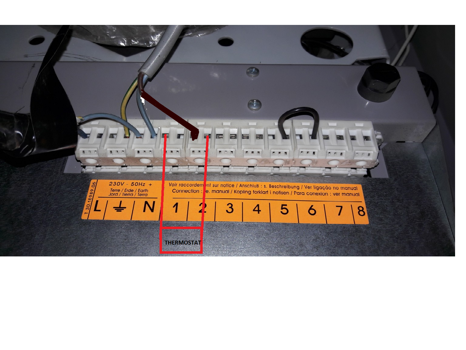 Pour le thermostat, moi je préfère agir sur la pompe, si dans le tableau électrique de la chaudière il n'y a pas un bornier où c'est écrit TA et où il y a un shunt à enlever et remplacer par le thermostat, alors mettez le thermostat en série sur l'alimentation électrique de la pompe, sur la phase si possible.