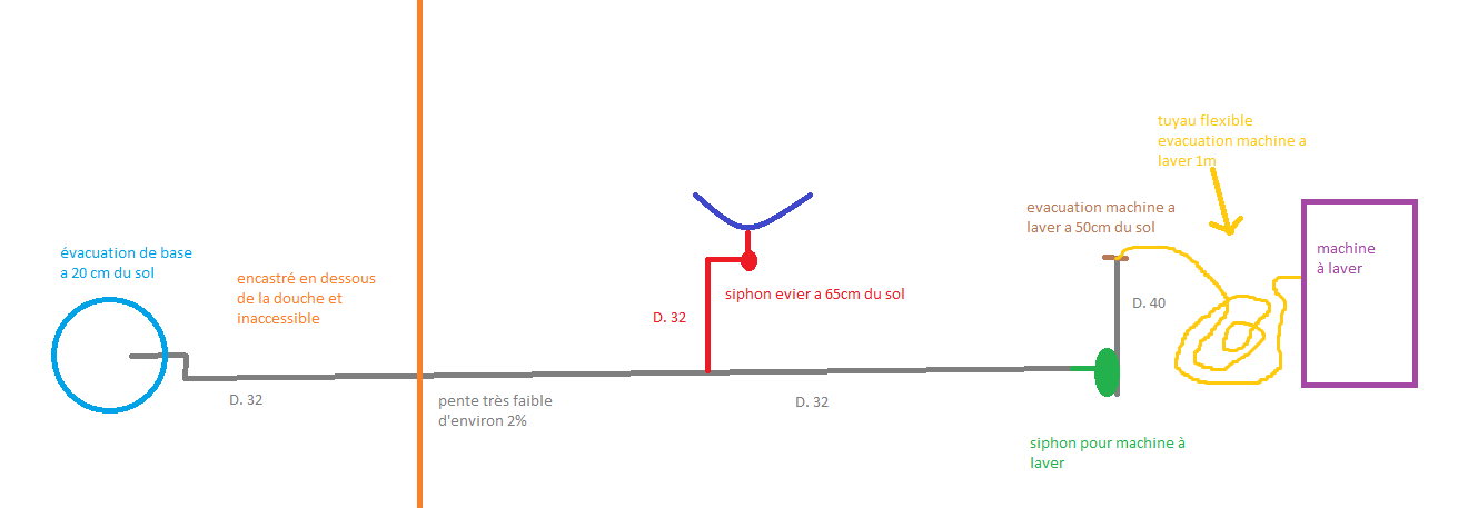(précision : l'évacuation douche à l'italienne est à part car il m'as fallut faire un jolie trou entre ma sdb et mes toilettes au rdc)