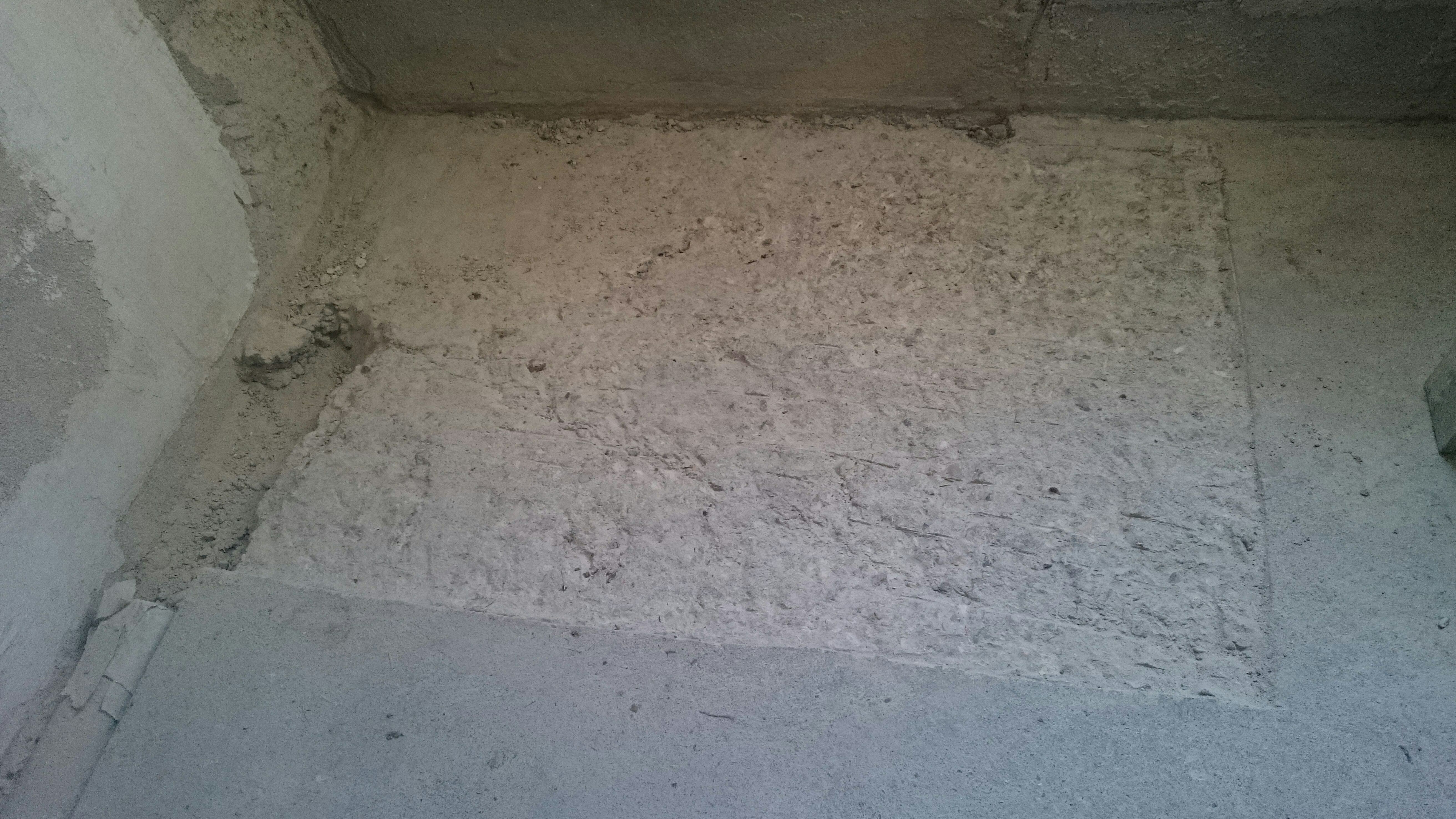 Ma dalle n'est pas de niveau, j'ai donc fait un raggréage. La partie décaissée n'est pas de niveau non plus.