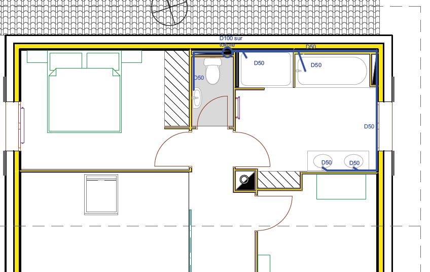 L'évacuation sur toiture ne tombe pas exactement au dessus du passage dans le placard au RDC: il y a 50cm de décalage . Je comptais utiliser un tuyau coudé pour la descente. Est ce que c'est quelque chose qui se fait?