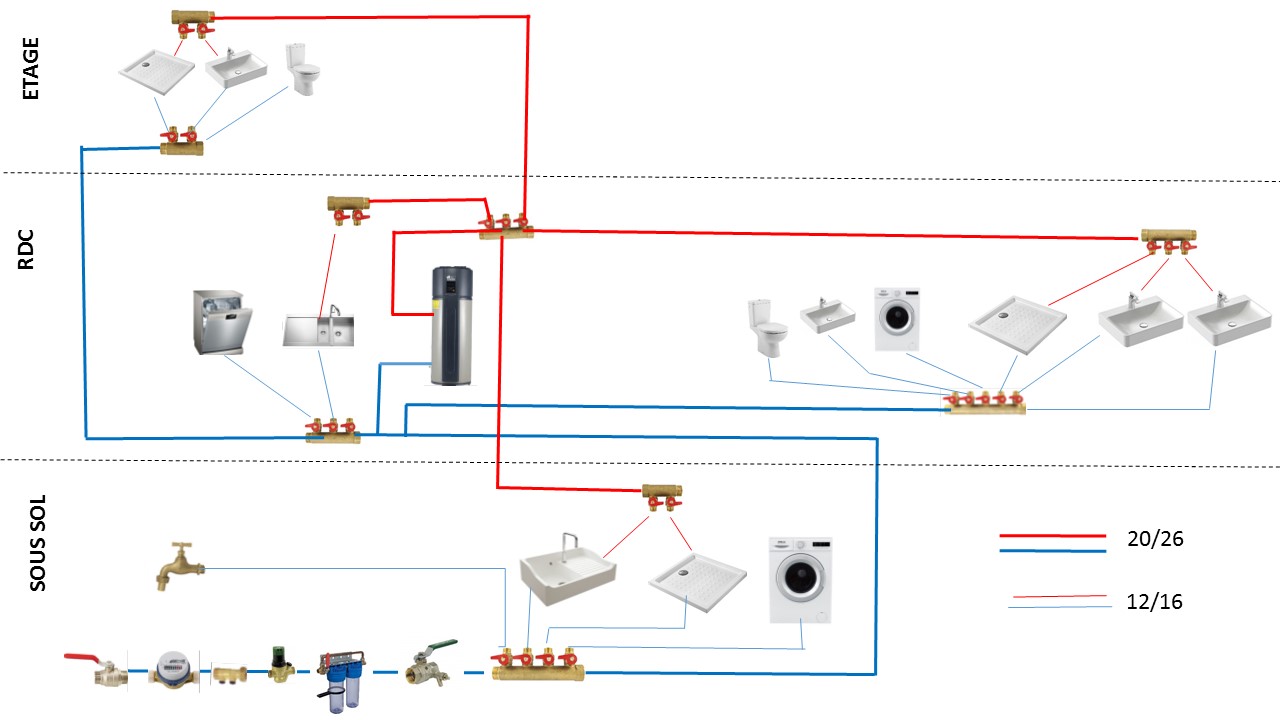 Plombiers Réunis » Installations de plomberie sanitaire (schémas) » Demande d'aide pour validation schema installation neuve multicouche