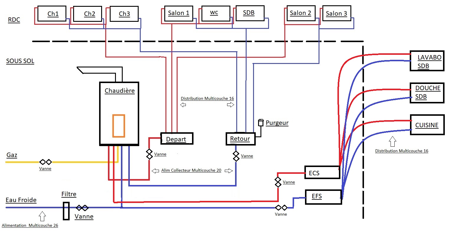 je souhaitais avoir un avis de collègue concernant mon installation de chauffage. Je precise que c'est une chaudière gaz murale pour chauffage uniquement, je ne lai pas encore choisis (le modèle).