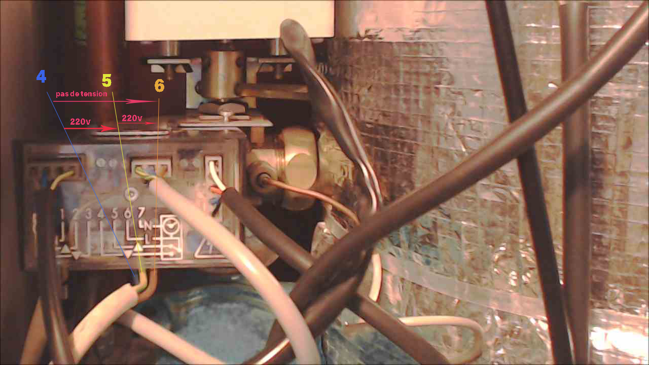 Du coup sur le premier test réalisé, si la température de consigne était 20° et qu'il en faisait 18 dans la pièce, alors le thermostat au lieu de donner l'ordre d'ouvrir la vanne 3 voies (V3V), donnait l'ordre de la fermer. Du coup l'eau restant très chaude dans le ballon, le brûleur ne se déclenchait pas. De même très probablement pour le circulateur.