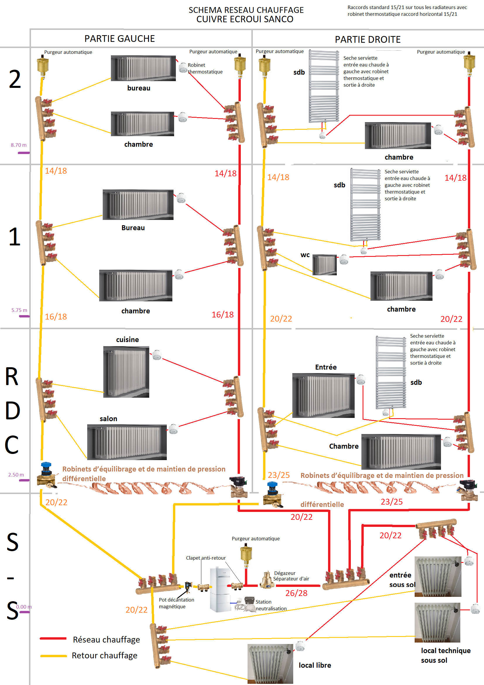 Les réseaux de chauffage n'aiment pas les montés et descentes faites au plus droit possible.