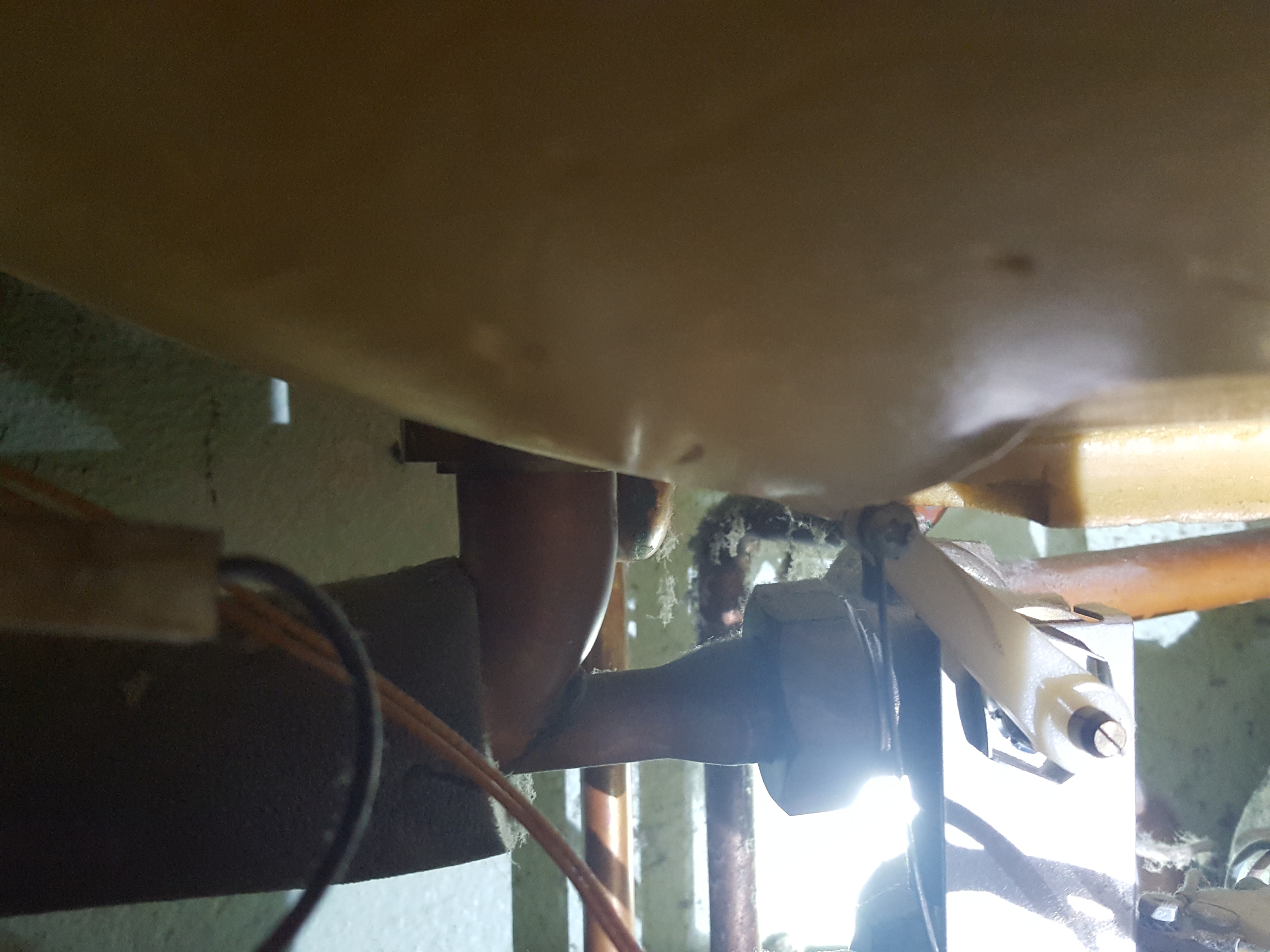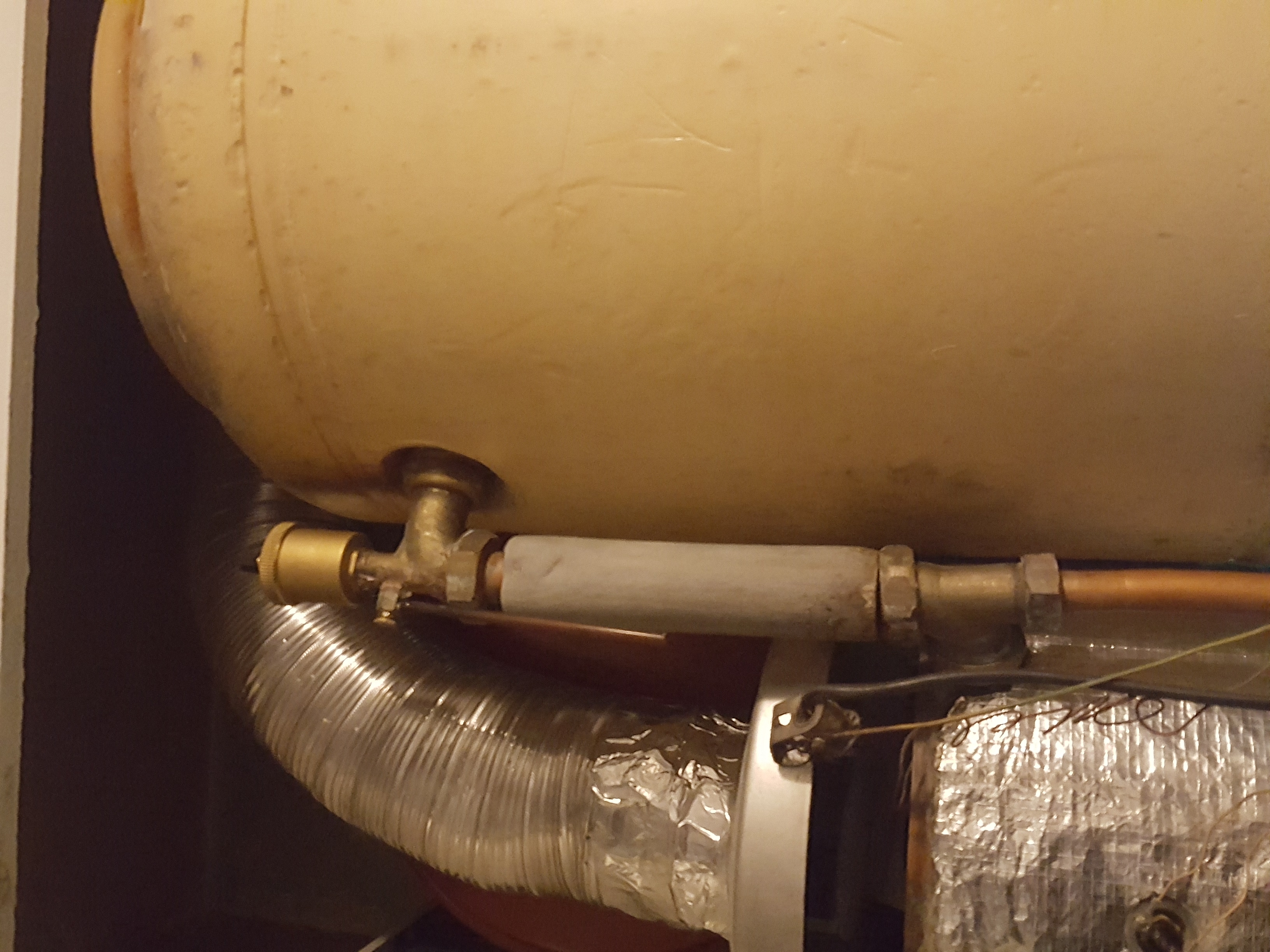 Je vais la déposer de son support après avoir vidé le ballon de 80l par le groupe de sécurité, puis le démontrer et en profiter pour passer tout ça à l'acide chlorhydrique car ça suite le tartre. J'ai une eau très dure. Bien sur, au préalable je coupe le gaz de ville et l'arrivée d'eau générale, je la débranche du jus et j ouvre un robinet pour l'appel d'air...