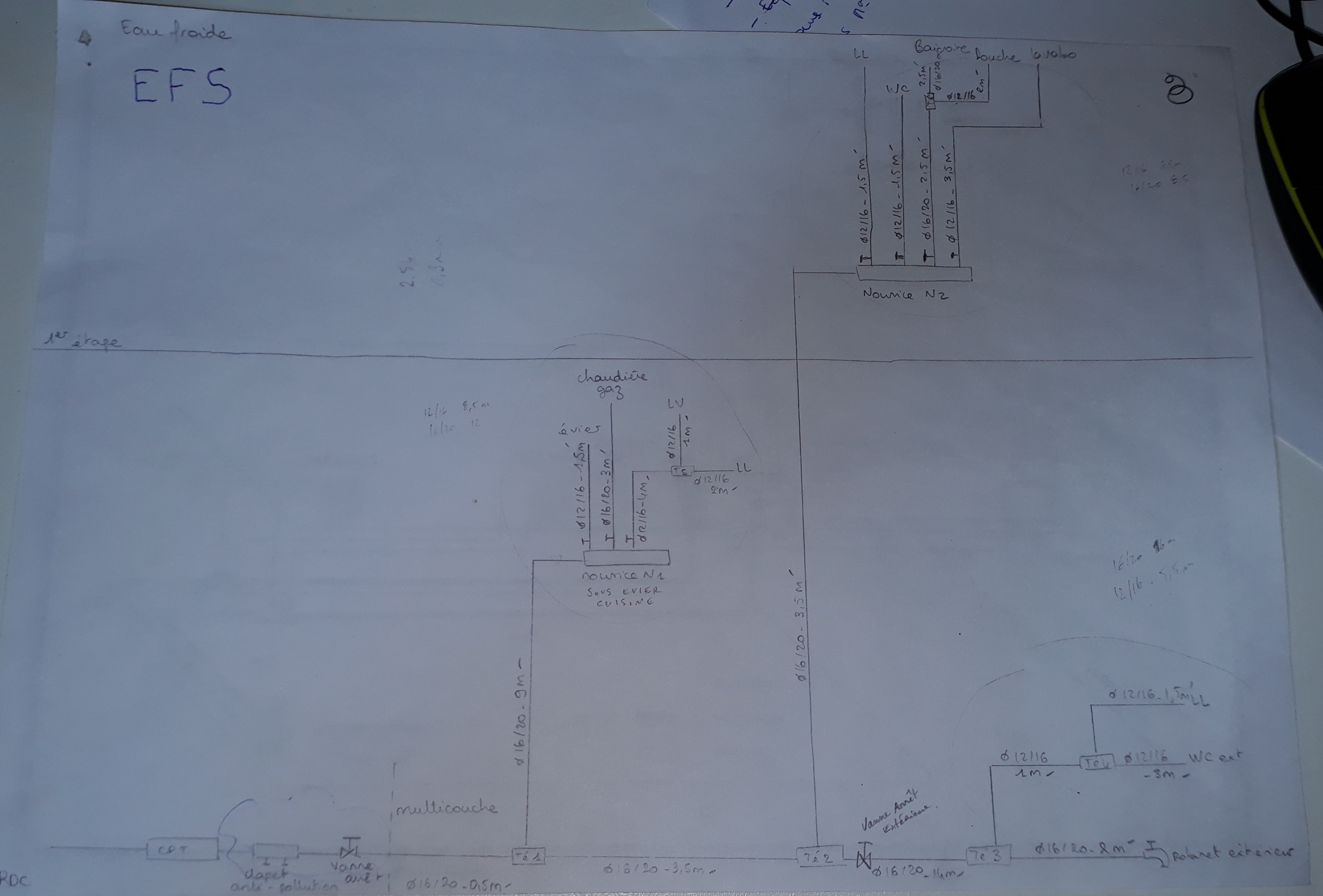 Nous avons tenté de faire un schéma de l'installation d'eau froide dans un premier temps en nous aidant de nombreux conseils lus sur ce forum. Si l'un d'entre vous a le temps d'y jeter un oeil ce serait super! Nous avons notamment des doutes sur