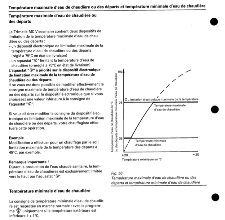 Je cherche à régler la température chaudière sur ma chaudière fioul Viessmann Uniferral. Ce type de chaudière d'après la documentation est tout à fait capable d'etre utilisé à une température inférieure à 75°C.