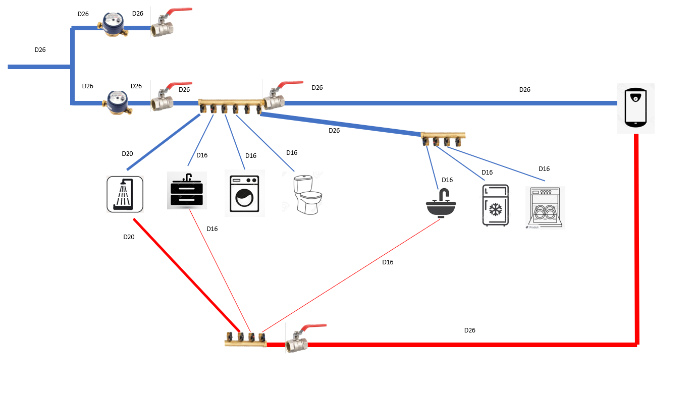 J'aimerai votre avis sur mon installation de plomberie en multicouche que j'aimerai réaliser d'ici 2 semaine. Il s'agit d'un appartement de 3 chambres, les tuyaux seront encastré dans le murs avec du tube multicouche gainé pour toute la partie salle de bain et encastré dans le faux plafond pour la cuisine.