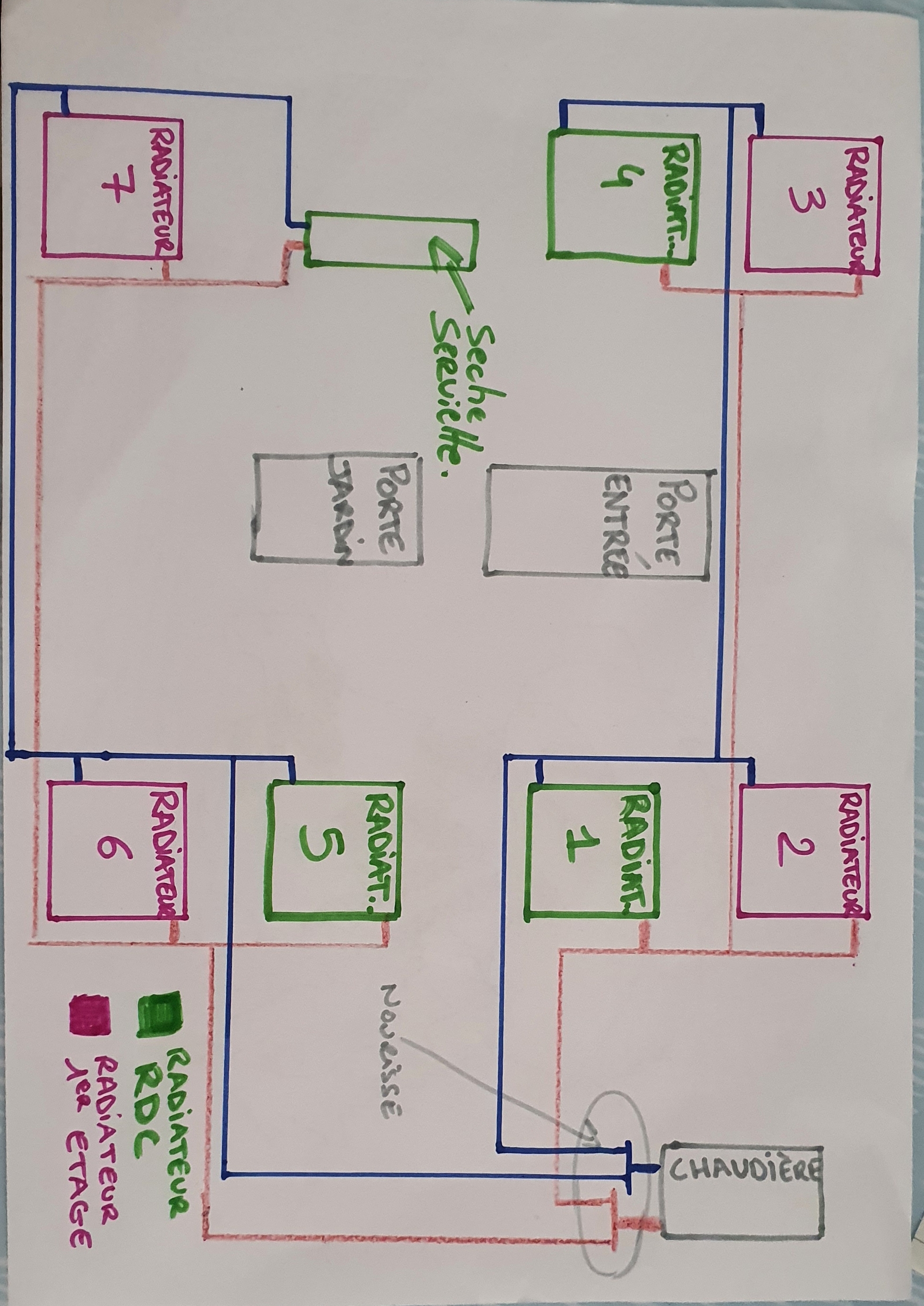 Je viens de faire un schéma pour mon circuit de radiateur ( chaudière a gaz ).