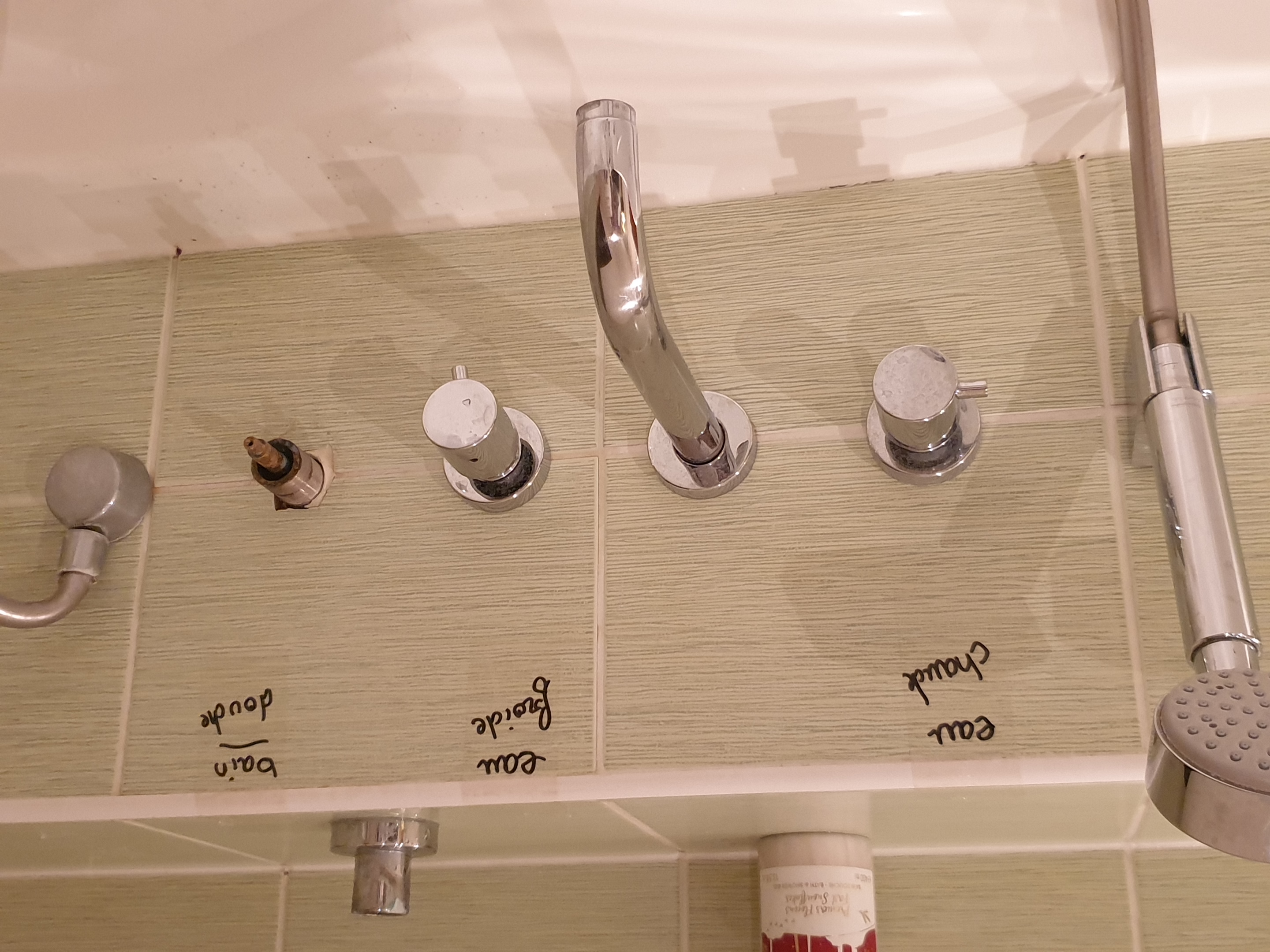 J'ai un petit soucis. j'ai un robinet d'une baignoire qui est encastré au mur. il y a 3 poignets, une pour l'eau chaude, 1 pour l'eau froide et une pour le basculement douchette ou robinet.