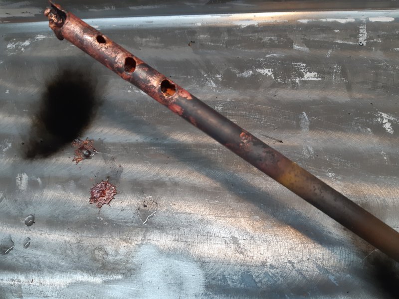 Première bourde : j'ai enlevé un raccord qui était sur ce tube, mais il a roulé jusqu'en dehors de la plaque métallique que j'ai mise sur mon établi, que le raccord est venu cramer...