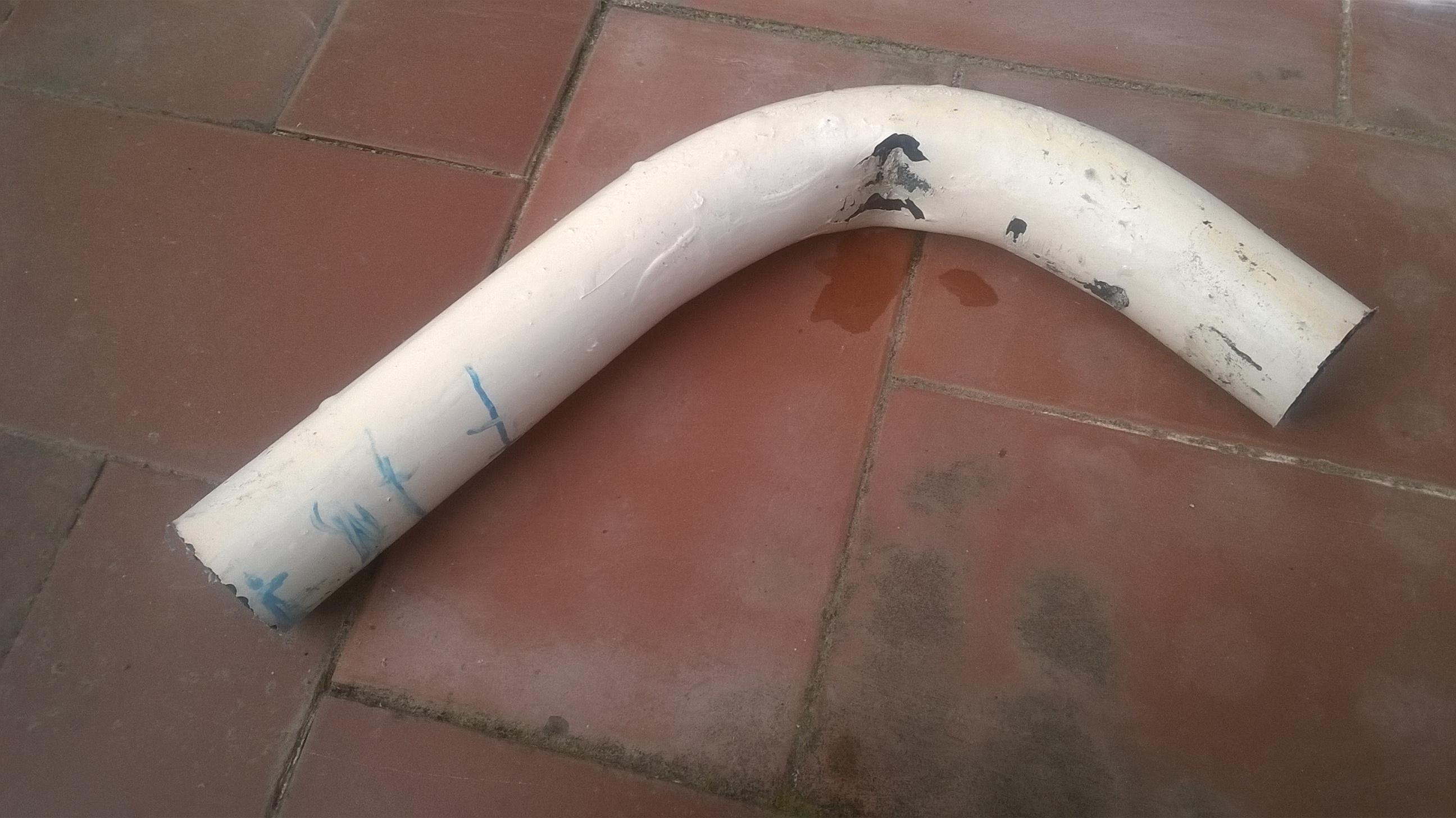 Voilà ,j'ai fait 2 sections de ce fameux tube PVC en  me servant d'un  conducteur  que j'ai fait moi -même . Le tube était bouché par des concrétions très dures venant des parois et impossibles à déboucher par d'autres moyens .Ainsi , après nettoyage ,j'aurais pu utiliser le même tube pour le raccord et placer simplement les deux manchons dont j'ai fait sauter les ergots  .Le résultat aurait été identique .Mais on ne peut pas tout prévoir ! Les manchons à dilatation ou les emboîtures se sont avérés inutiles car très difficiles à mettre en place et inefficaces  .Je me suis aperçu  que le tube dans son ensemble était bien concrétionné  mais aussi  bouché par des concrétions très fragiles et tenaces  .Je les ai nettoyés dans la mesure du possible étant donné la situation  et la position  de la canalisation .Mais il va falloir que je retire ce calcaire mélangé à d'autres éléments organiques  .