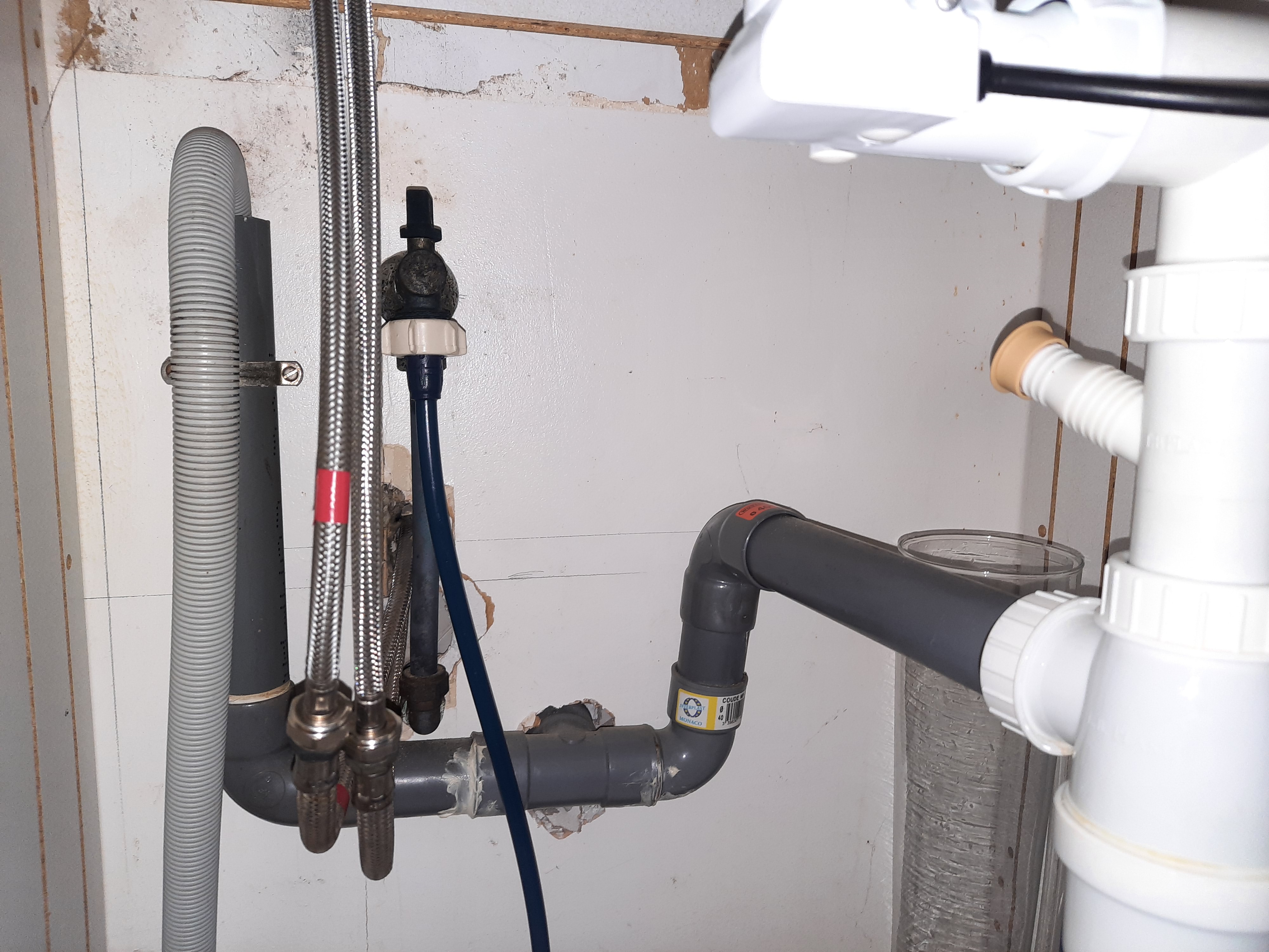 En même temps, vu la configuration du circuit, à part faire un autre trou dans le mur (côté lave-vaisselle après l'évacuation) pour aller dans le sens de la pente, je ne vois pas trop d'autre solution.