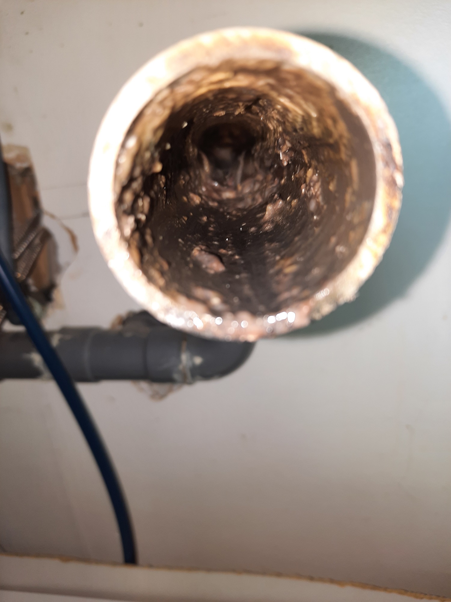 En démontant le siphon de mon évier pour le nettoyer, j'ai fait le constat qu'il y a énormément de graisse qui s'accumule dans le tuyau juste après siphon, probablement dû au fait que celui-ci n'est pas en pente (voir photo). J'ai constaté qu'il y avait de la graisse jusqu'au Té car j'ai démonté la partie de l'installation côté évacuation du lave-vaisselle.