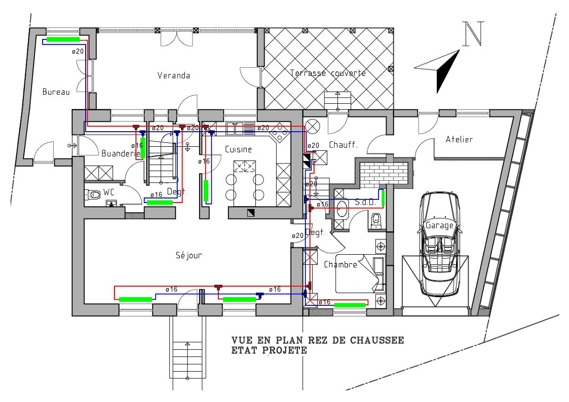 Je vais refaire entièrement la distribution de mon chauffage en multicouche, au départ d'une nouvelle chaudière à Pellets. Menuiseries PVC double vitrage existant, je pensais partir en 20 puis desservir en 16.