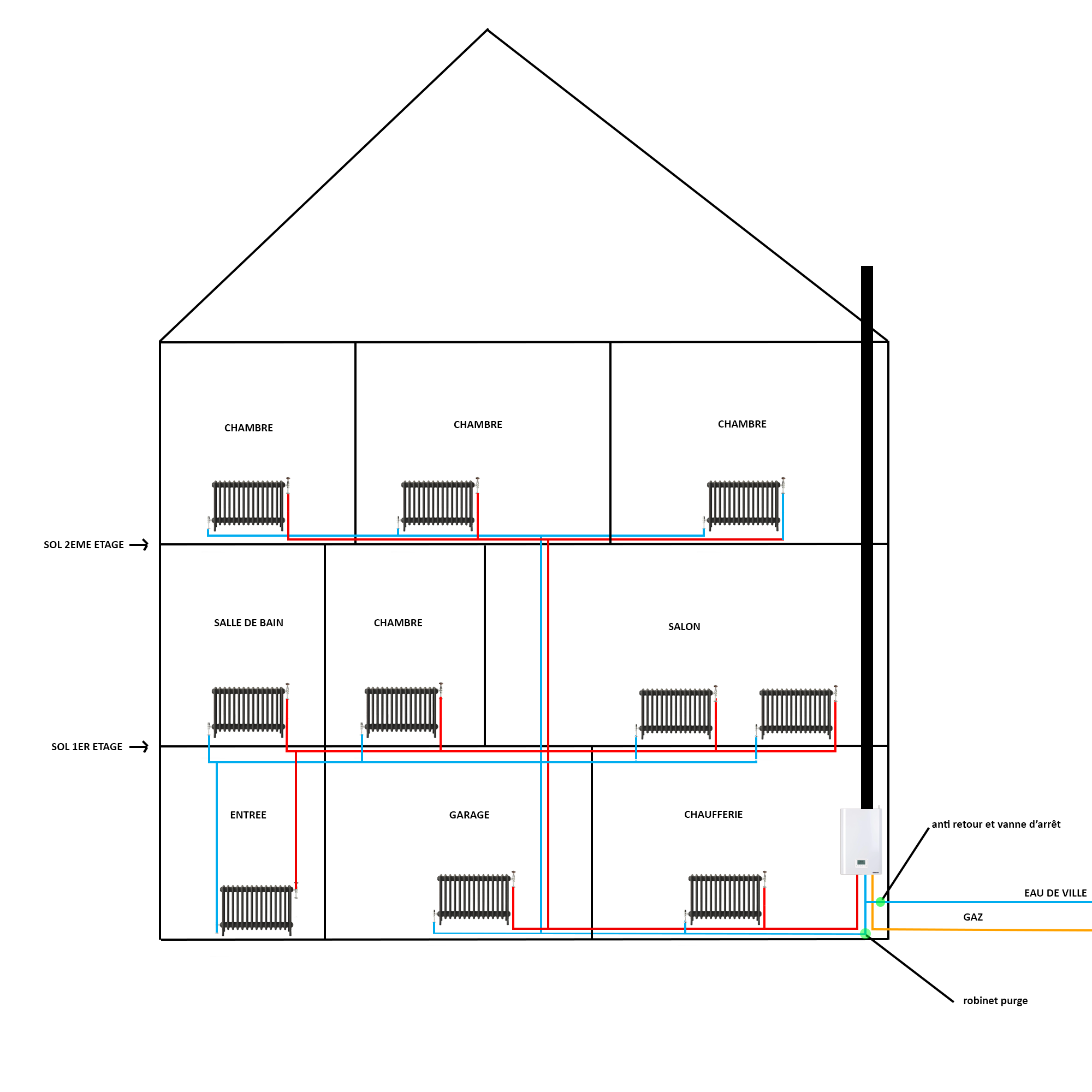 Re : Schéma rénovation chauffage radiateurs en fonte et multicouche