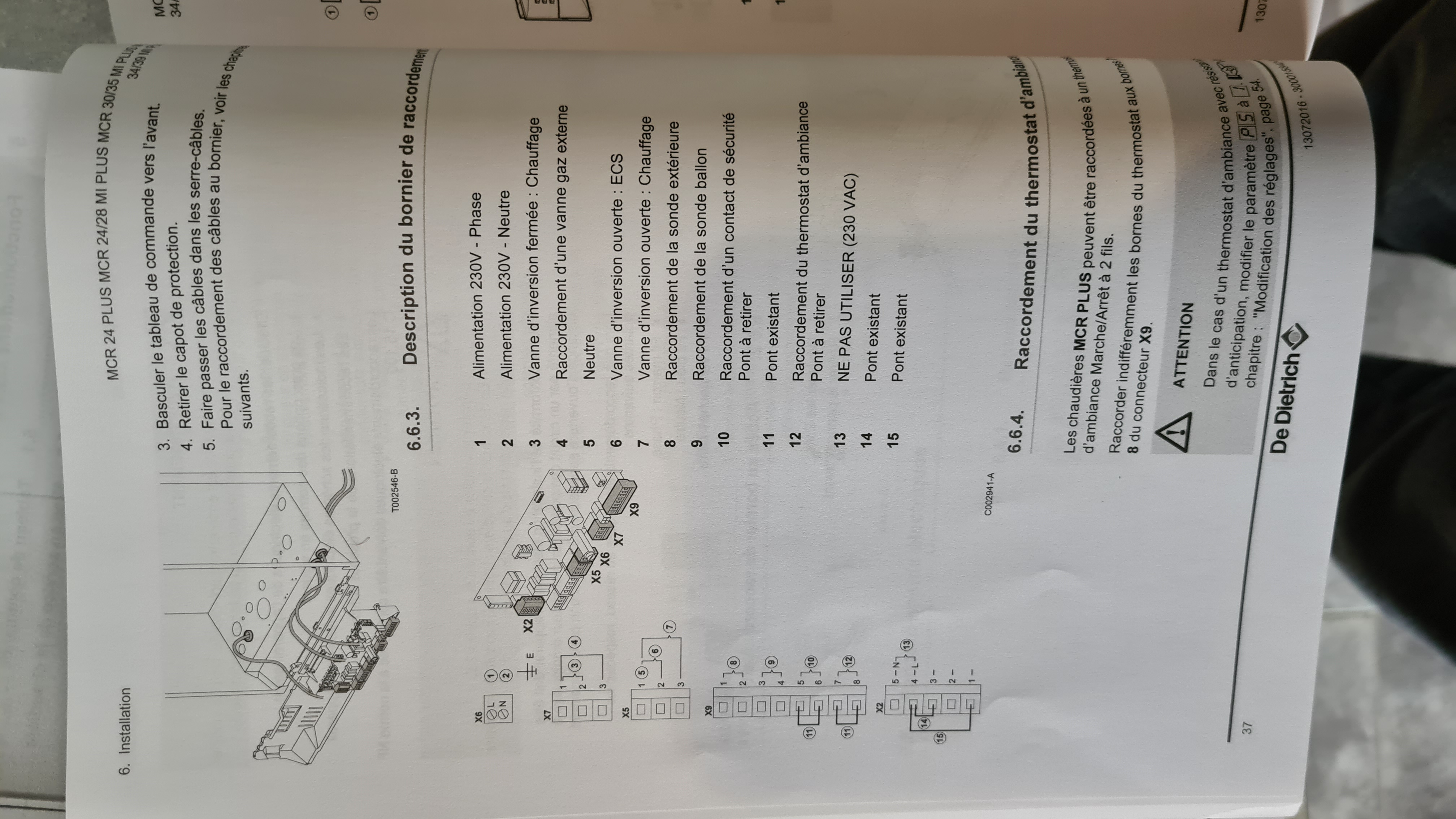 Je pensais avoir trouvé le bon branchement (CF photo 2) mais le thermostat ne contrôle pas la chaudière et la pression de l'eau monte même de façon importante)