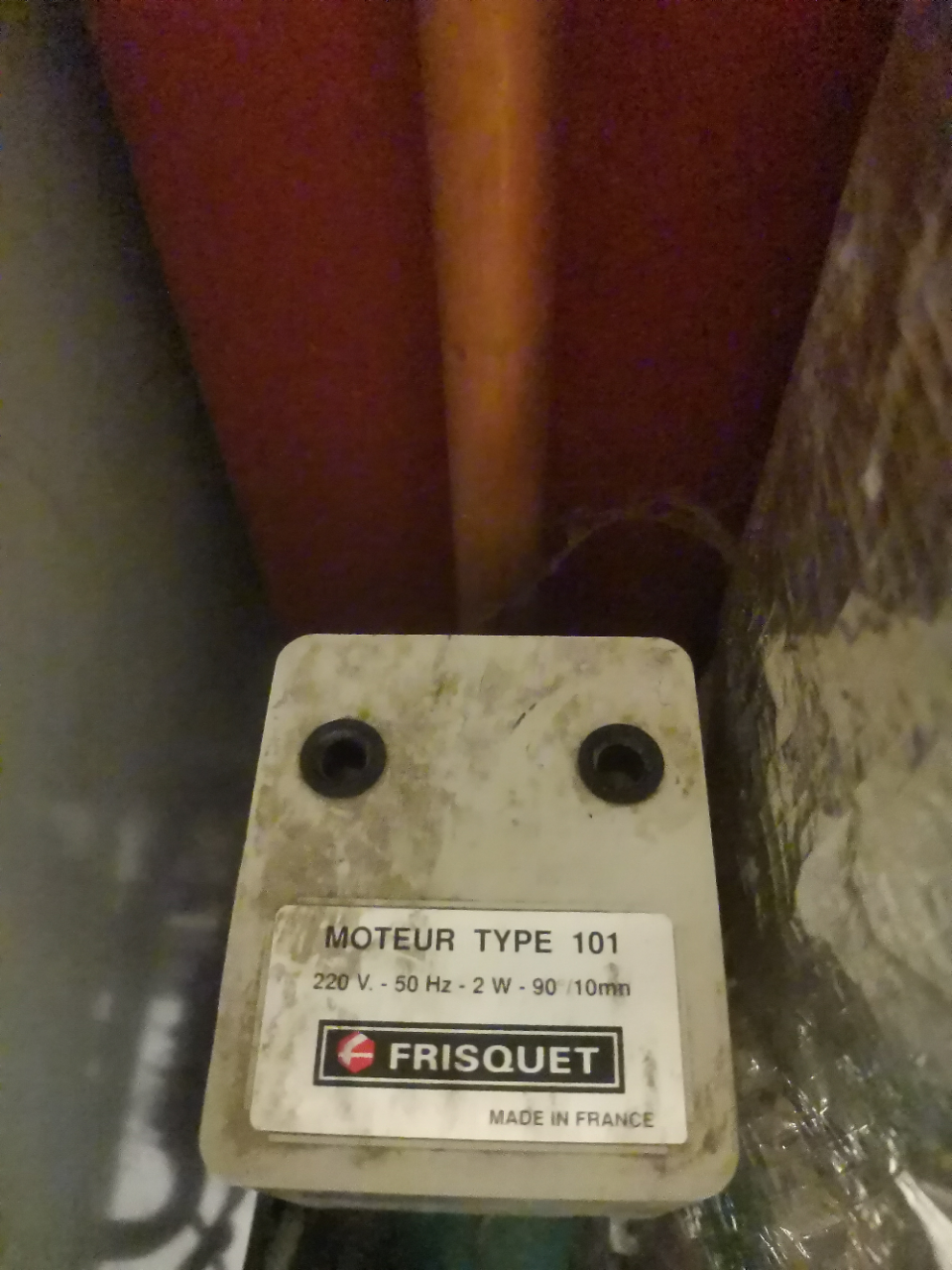 Cela a très bien fonctionné pendant 1 semaine et ce matin, les radiateurs ne voulaient pas chauffer alors que le thermostat Nest était bien en marche. J'ouvre la chaudière et je constate que le moteur Frisquet (voir photo) vibre anormalement fort ainsi que le câble qui le relie au boitier électrique. Du coup, je coupe le jus et rebranche l'ancien thermostat Thermoflash pour voir si le résultat est identique et là les radiateurs se mettent bien à chauffer et le moteur ne vibre plus anormalement.