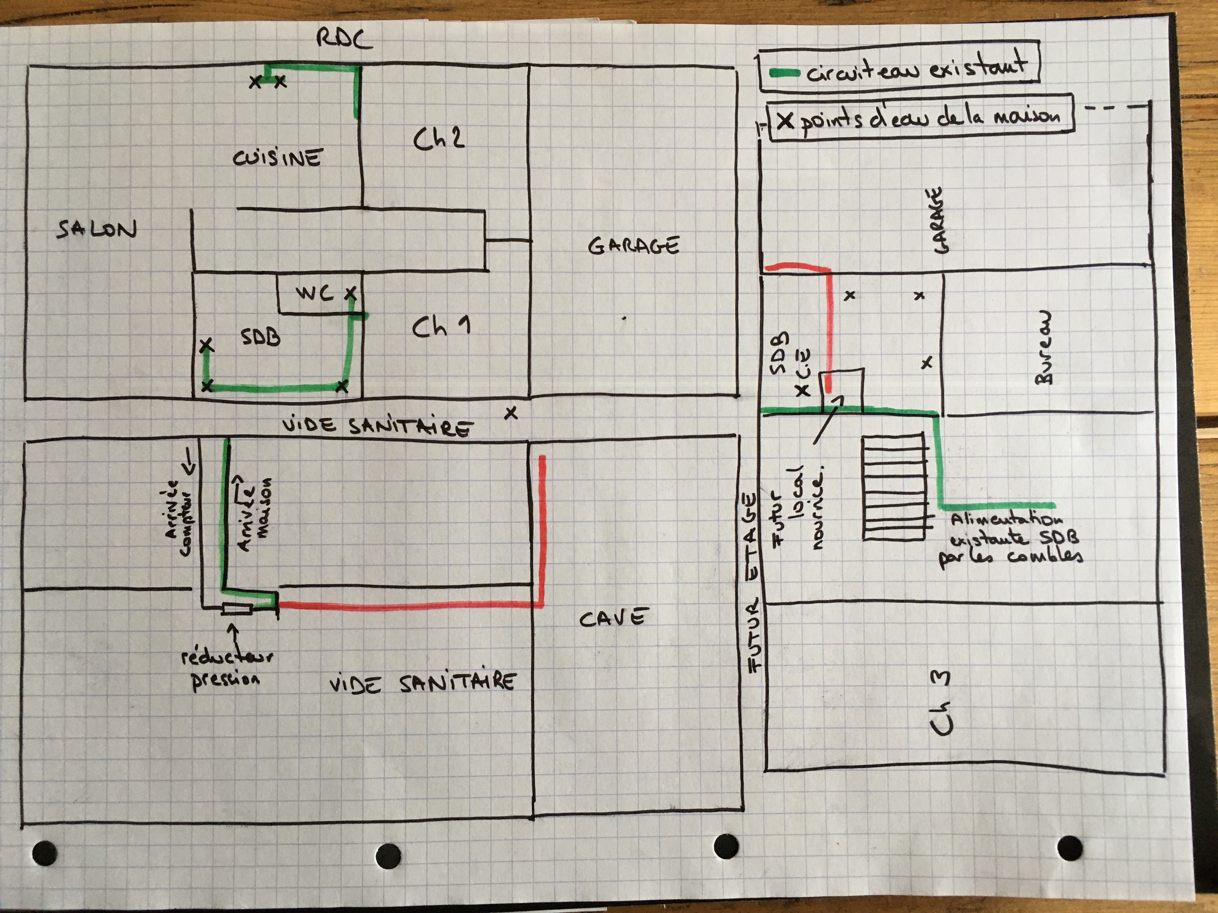 Celle ci arrivera sur une nourrice ce qui me permettra de pouvoir couper mon eau pièce par pièce (cuisine autonome en bas, séparation des 2 pièces d'eau et du chauffe eau).