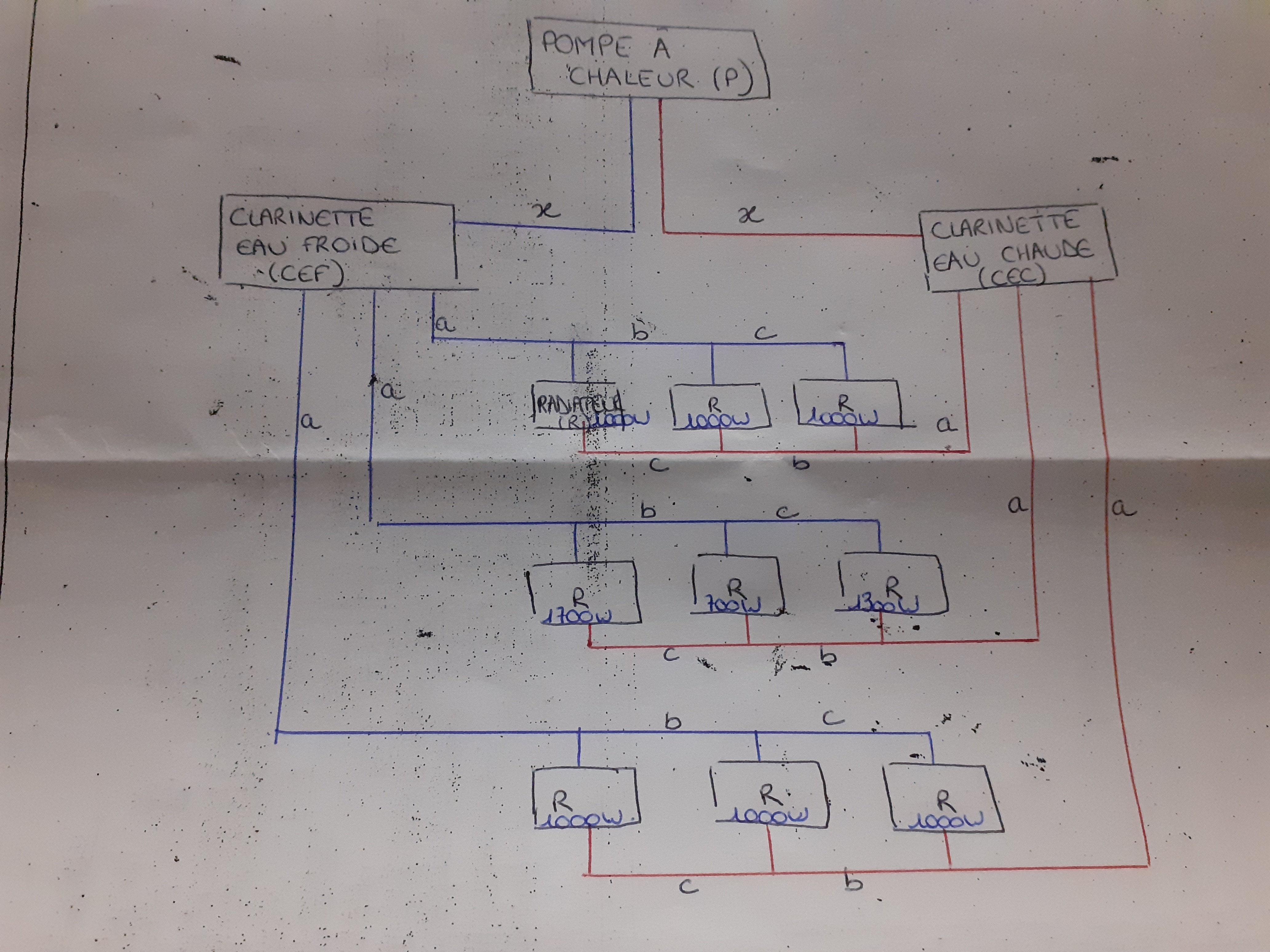 De plus deux circuits de radiateurs (celui en haut et celui en bas sur le schema) sont équilibrés car tous les radiateurs font à peu près du 1000w. Mais sur le dernier circuit (celui au milieu sur le schema) les radiateurs sont de tailles différentes et je ne sais pas si cela doit engendrer une différence sur le diamètre de mes tuyau ou pas sachant que je compte mettre des té de réglage sur tous mes radiateurs.