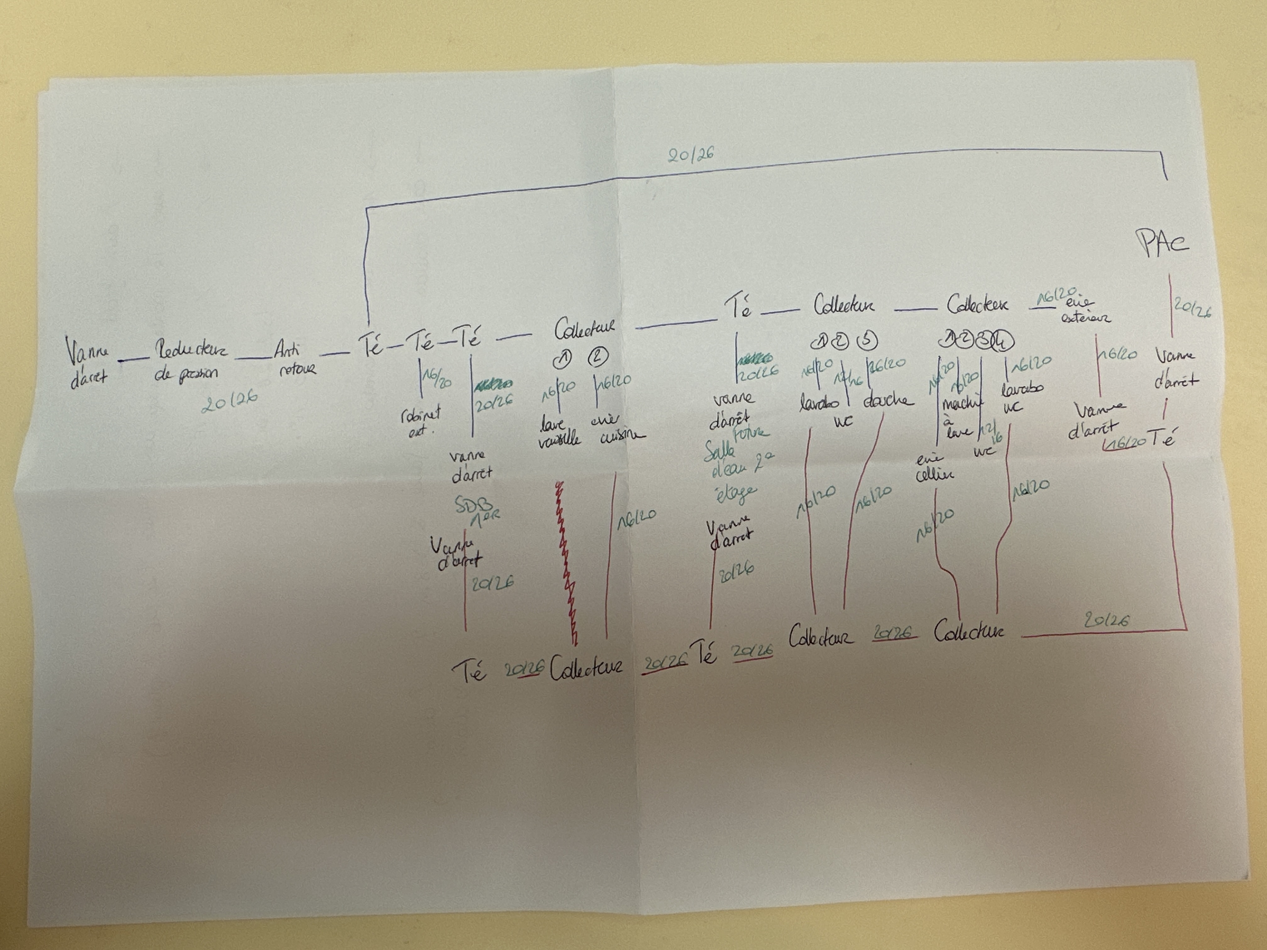 Pourriez vous me dire si le schéma que j'ai fait est correct et n'a pas de grosses incohérences selon vous ? Notamment au niveau des collecteurs des diamètres et des Tés.