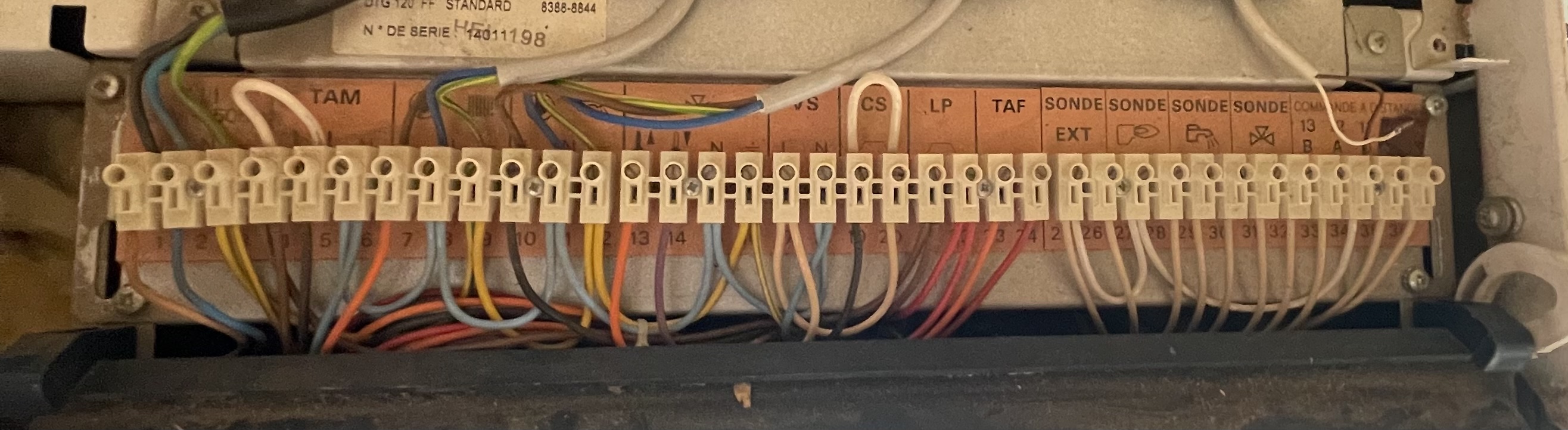 J’ai installé un kit wiser de chez Schneider (l’ancien modèle), donc un boîtier principal à installer sur ma box internet, les vannes thermostatiques connectées qui vont avec sur tous mes radiateurs et maintenant j’arrive au thermostat à brancher sur ma chaudière et ça se complique!