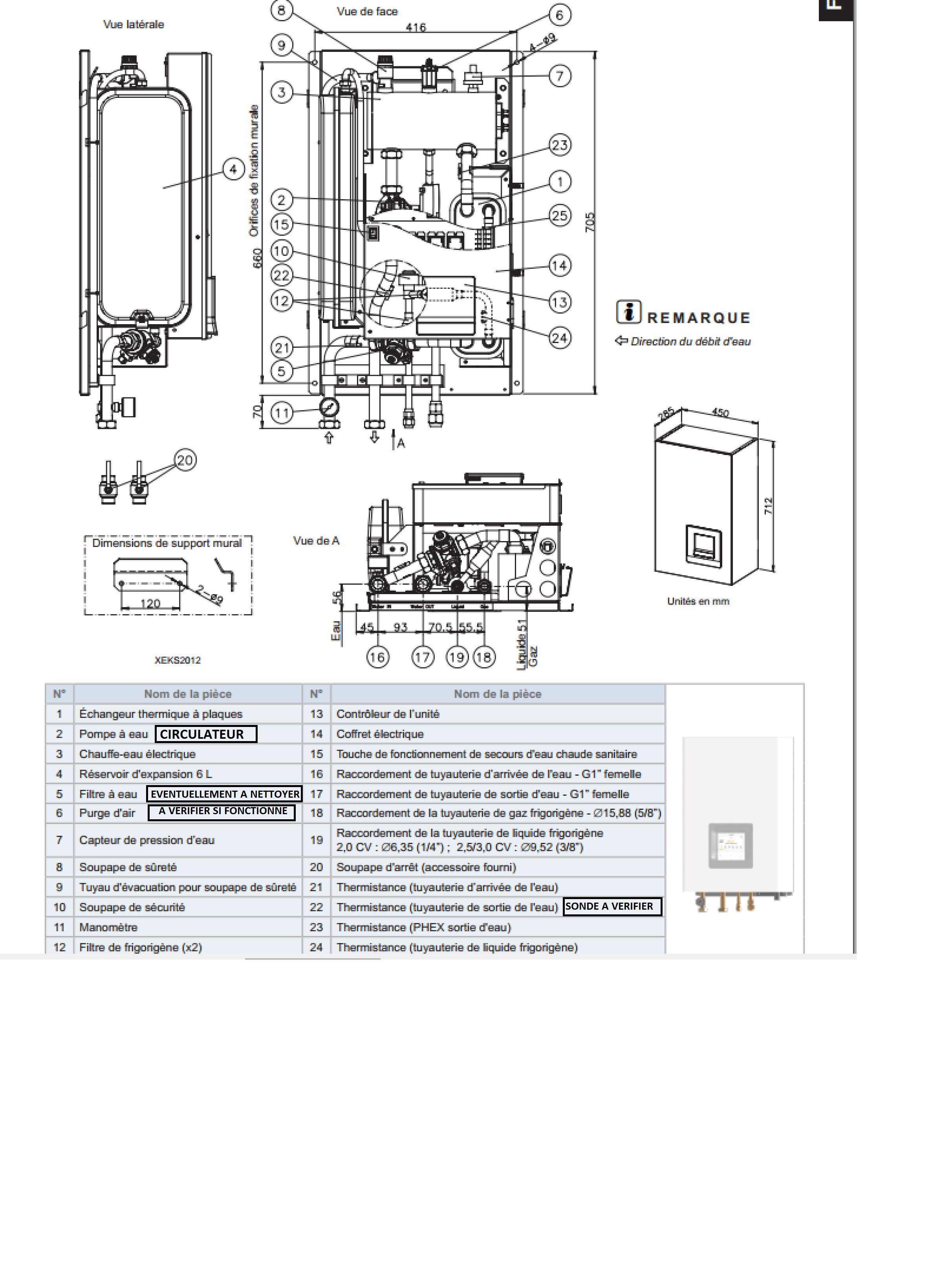Oui ,je me suis aperçu ,entre -temps ,que les tuyaux étaient bien raccordés à l'unité  (couleur rouge )