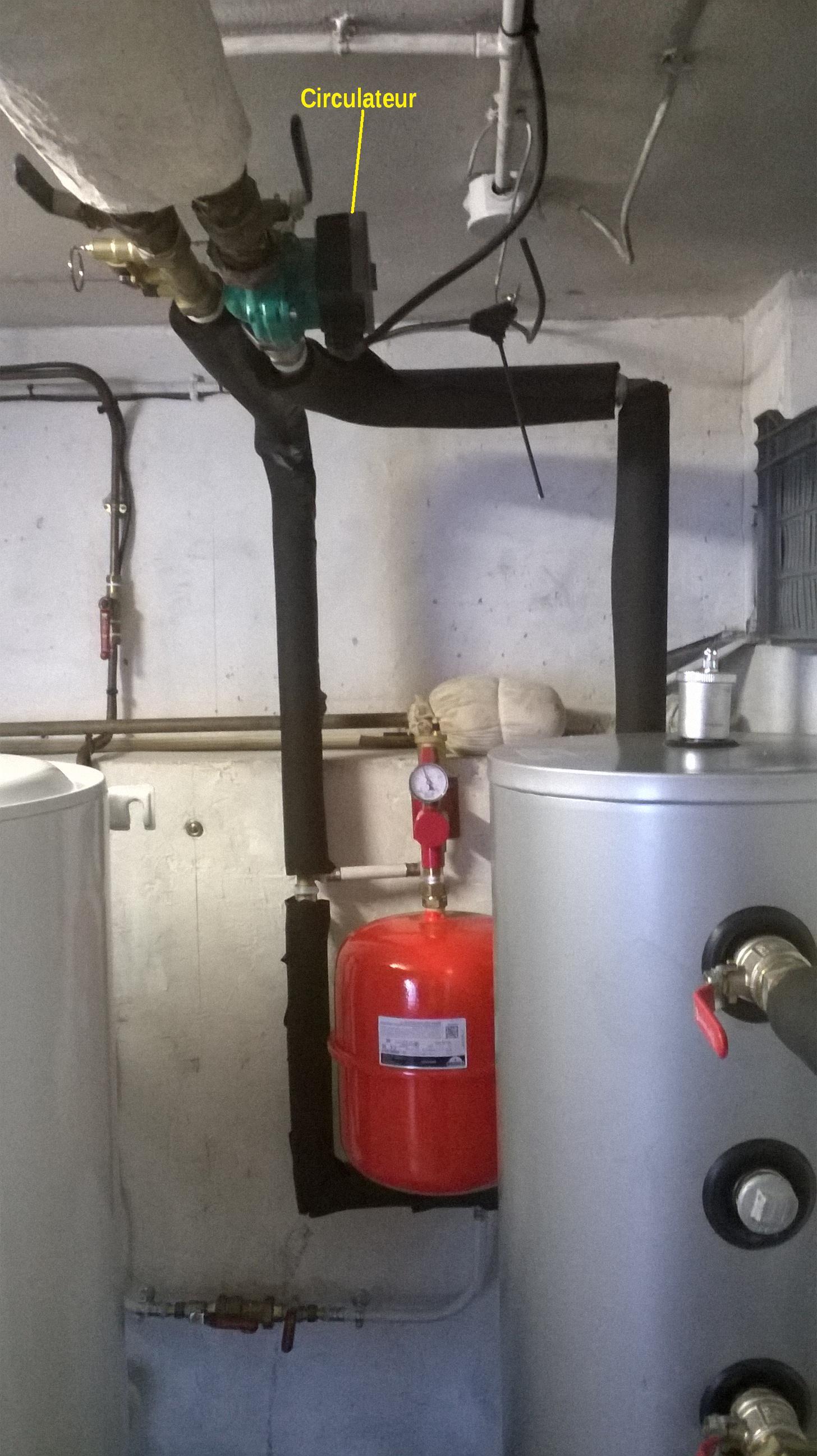 Je ne vois pas le circulateur qui envoi l'eau aux radiateurs au plancher chauffant. "Circuit secondaire".