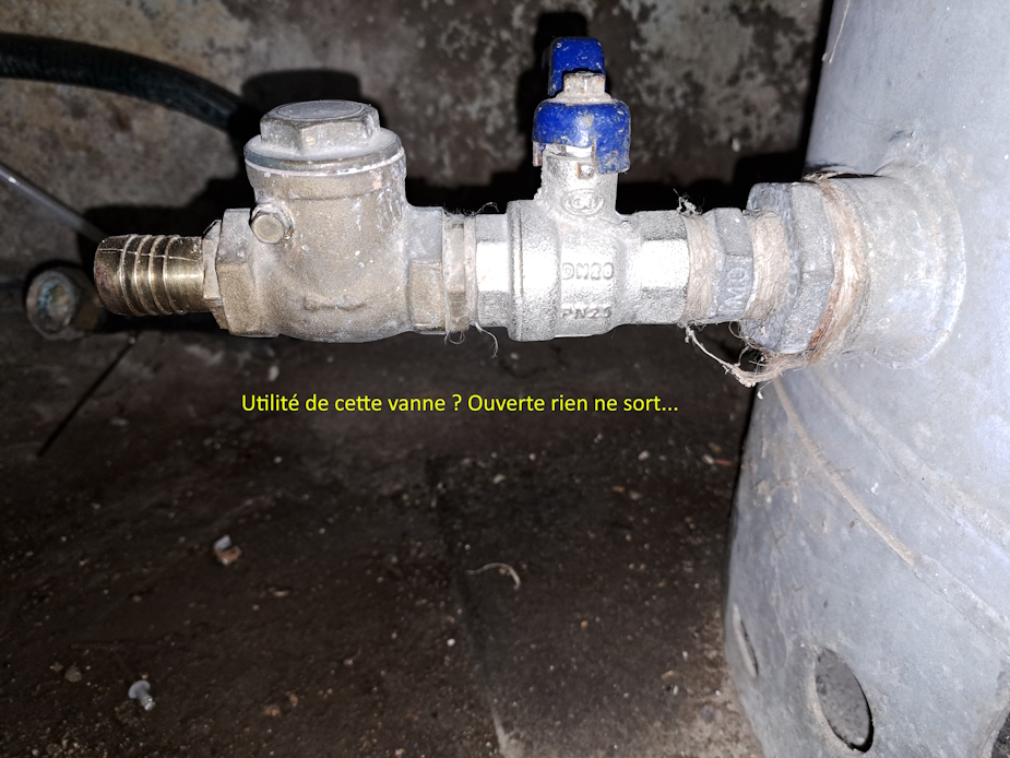 1 - Le robinet/La vanne en bas à gauche sert à quoi ? Elle n'est raccordée à rien et si je l'ouvre rien n'en sort: est-ce normal ?