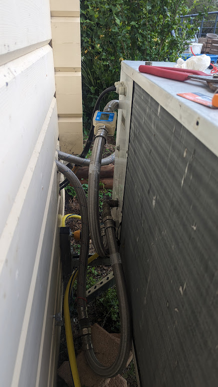 J'ai donc desserré les deux écrous du pressostat du module extérieur, il y avait bien de l'eau sous pression, difficile à s'avoir si il y avait de l'air, peut-être un peu, en tout cas il y a eu tout de suite de l'eau.