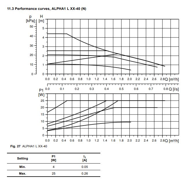 La pompe que vous avez sélectionné est un peu trop forte, pour évacuer les 15 kw du poêle à un delta T de 20°c, il faut un débit de 0.65m3/h.