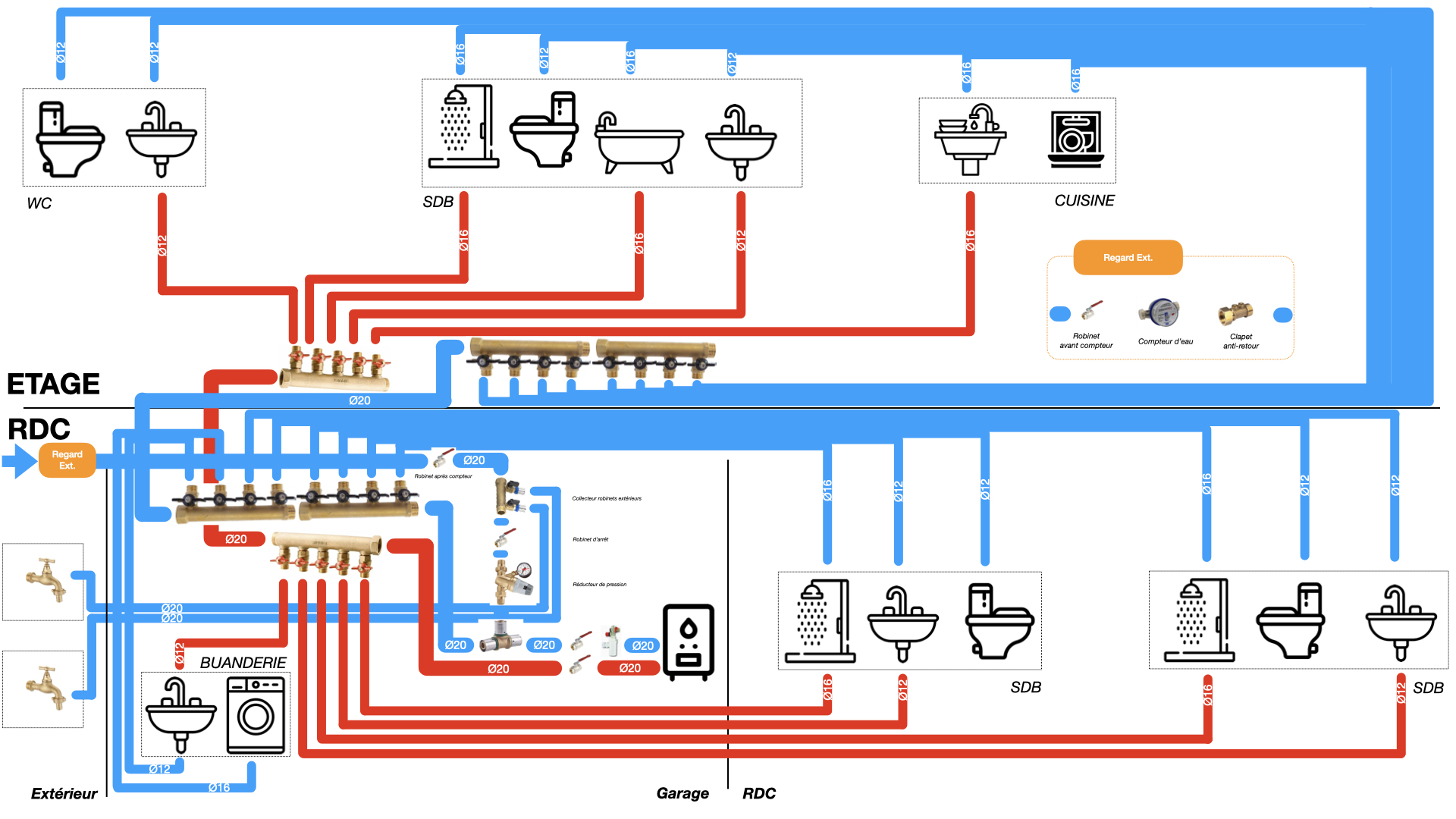 Sujet : Avis schéma plomberie en PER en autoconstruction