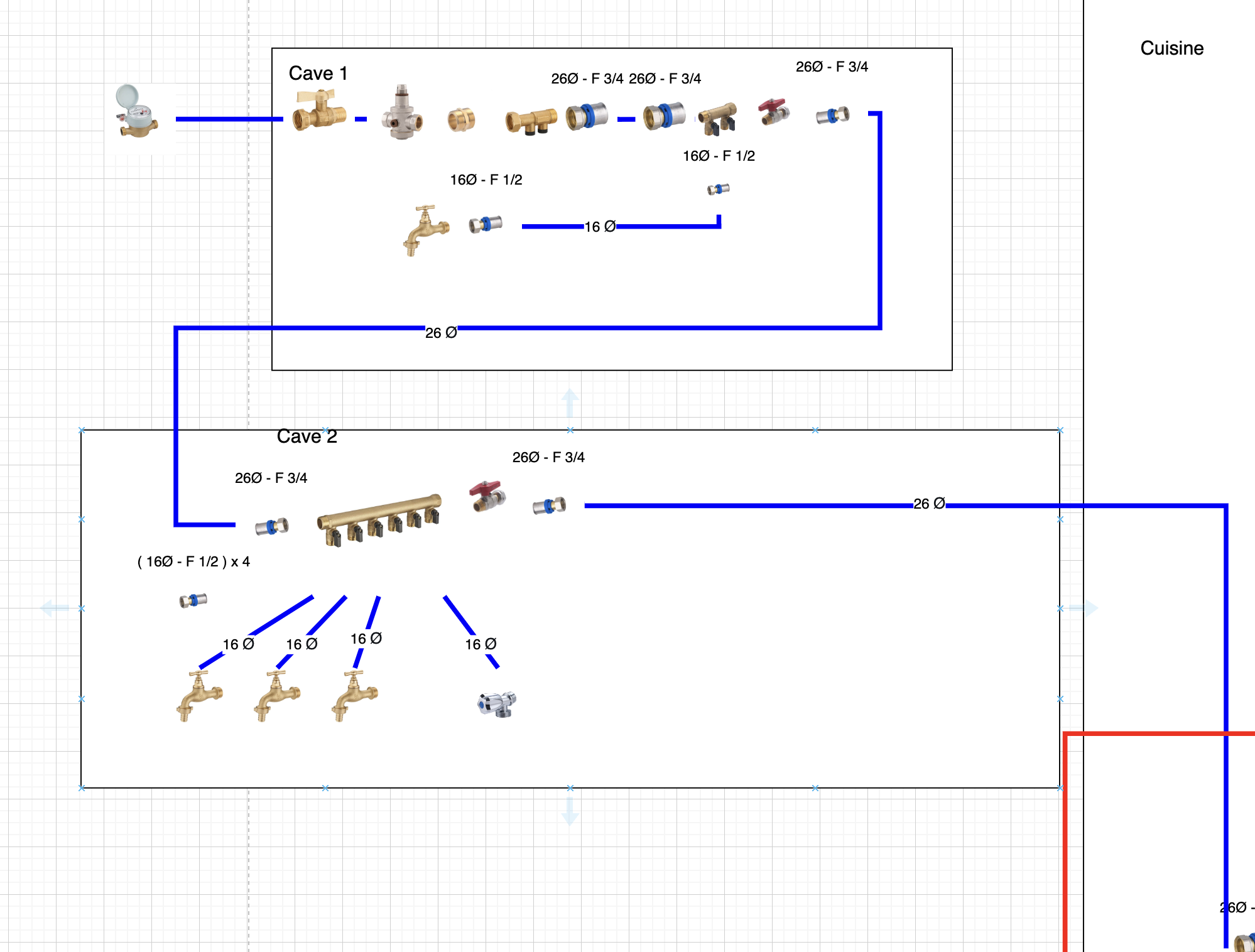 Tout les autres points en 16, 1 point d'eau tuyau de 16, si 2 points d'eau tuyau de 20