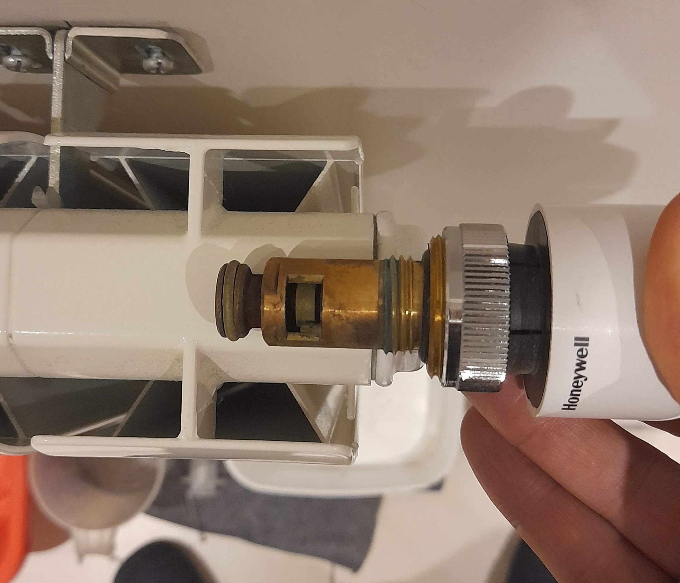 J'avais beau bouger la tête thermostatique, aucune modification. J'ai donc profité d'un nettoyage du radiateur pour regarder comment il fonctionne.