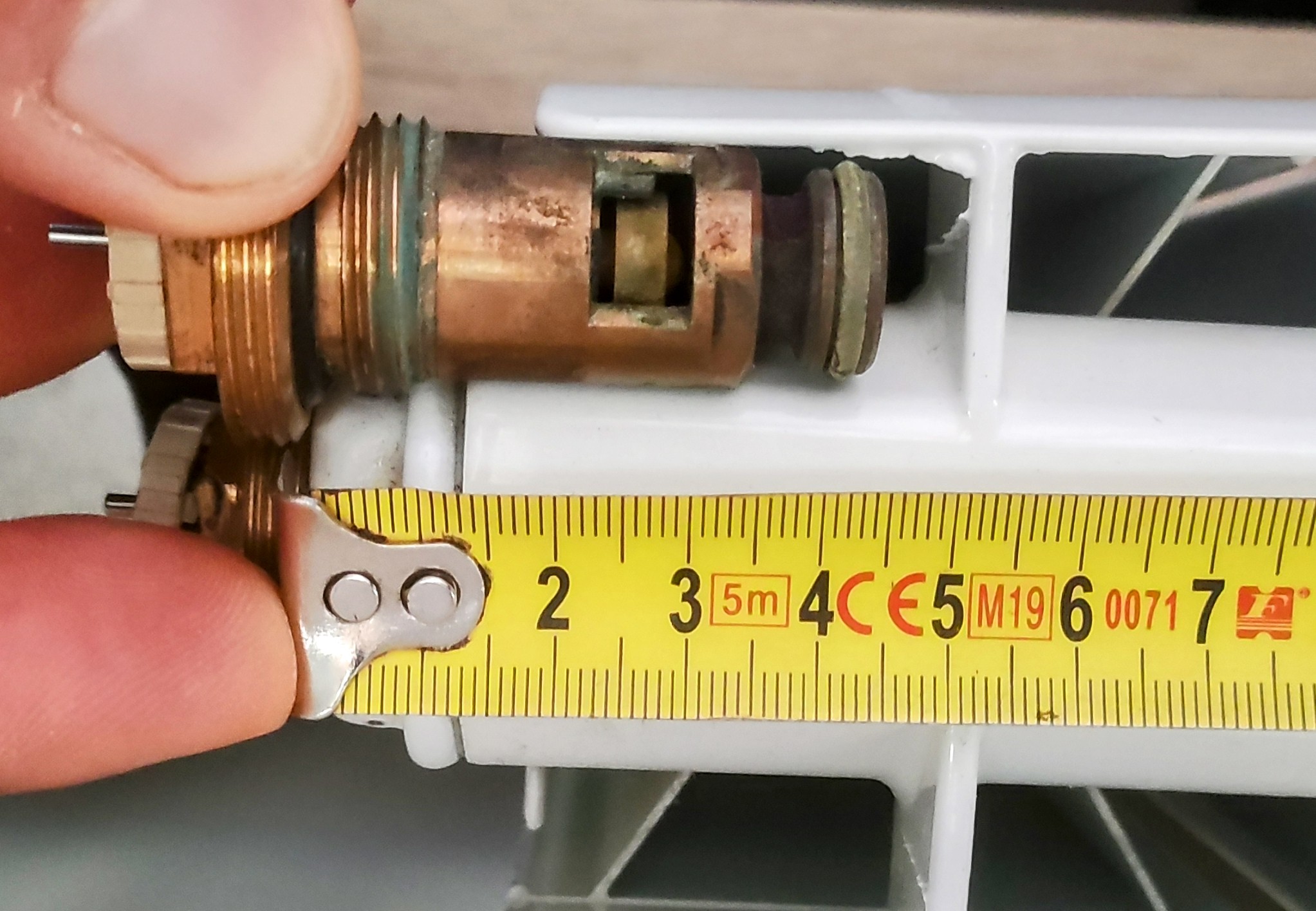 Je démonte la tête puis l'insert thermostatique et je me rends compte que l'insert n'est pas assez long. Il ne va pas jusqu'au tuyau de remonté, il s'arrête avant donc l'action de la tête ne donne aucun résultat. Logique.