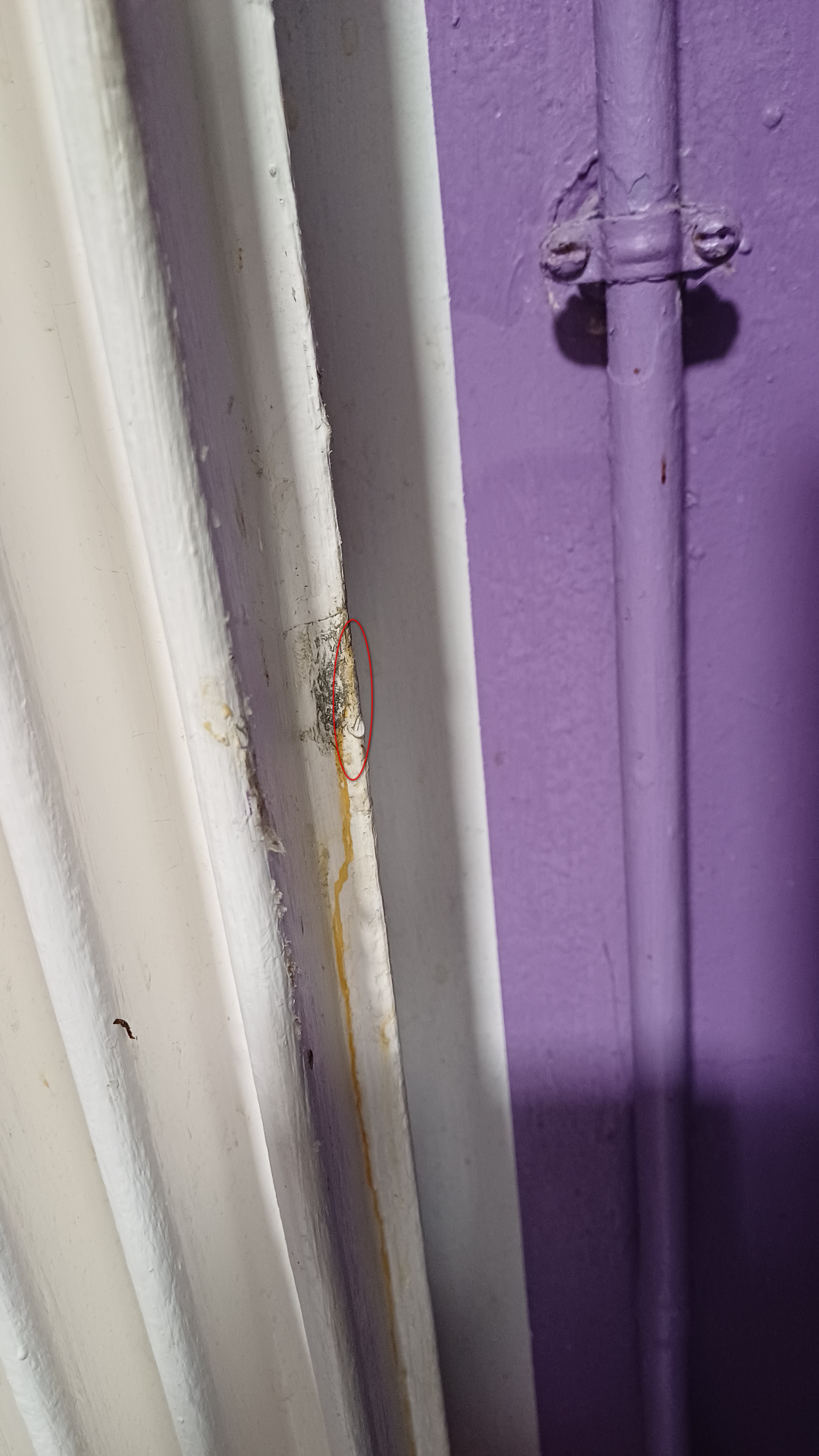 J'ai remarqué qu'il y a une fuite à droite, sur la tranche de mon radiateur (acier ou fonte ?) de cuisine.