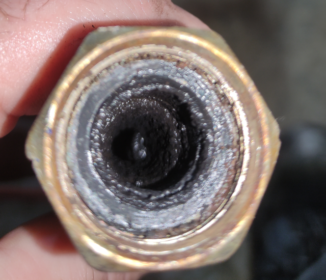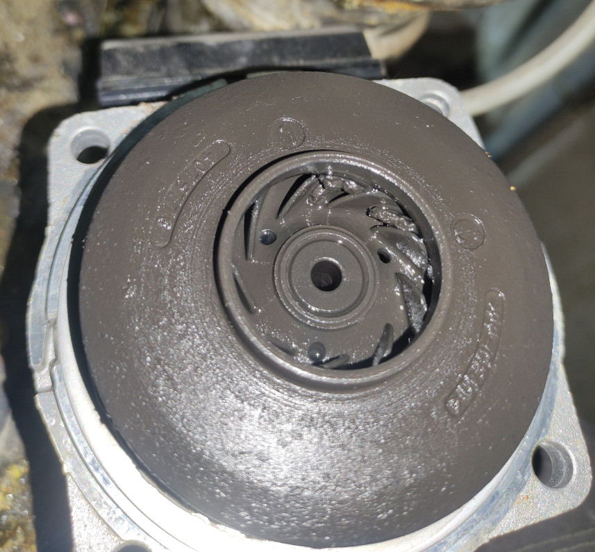 Il y avait quelques résidus dans la turbine (voir photos) et ca bouchait partiellement 2-3 pales. J'ai pu nettoyer facilement au tournevis et compresseur, et j'ai vérifié avec une lumiere qui entre par l'orifice central qu'il n'y avait plus rien de coincé dans chacune des pales.