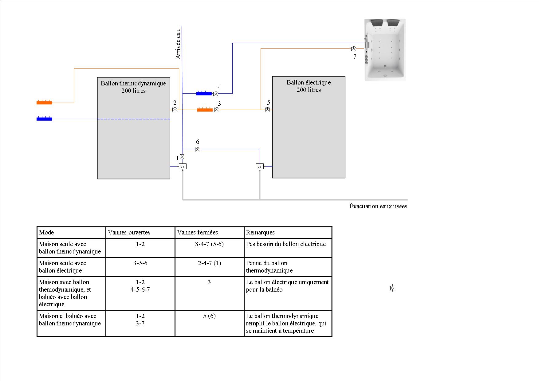je voudrai mettre un nouveau chauffe eau en parallèle pour ma balnéo, qu'il puisse aussi alimenter la maison en cas de panne de mon chauffe eau thermodynamique ; et que le thermodynamique puisse alimenter la balnéo si l'on a pas besoin de beaucoup d'eau chaude dans la maison.