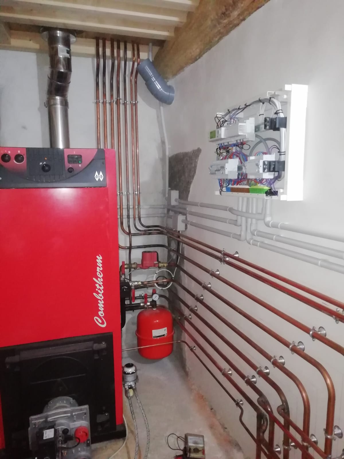 Après avoir bien réfléchi à ce qu'il fallait faire, j'ai fait refaire en totalité l'installation en cuivre par un plombier chauffagiste; je me suis chargé moi-même des raccordements électriques et de la partie régulation. Voici ce qui a été fait: