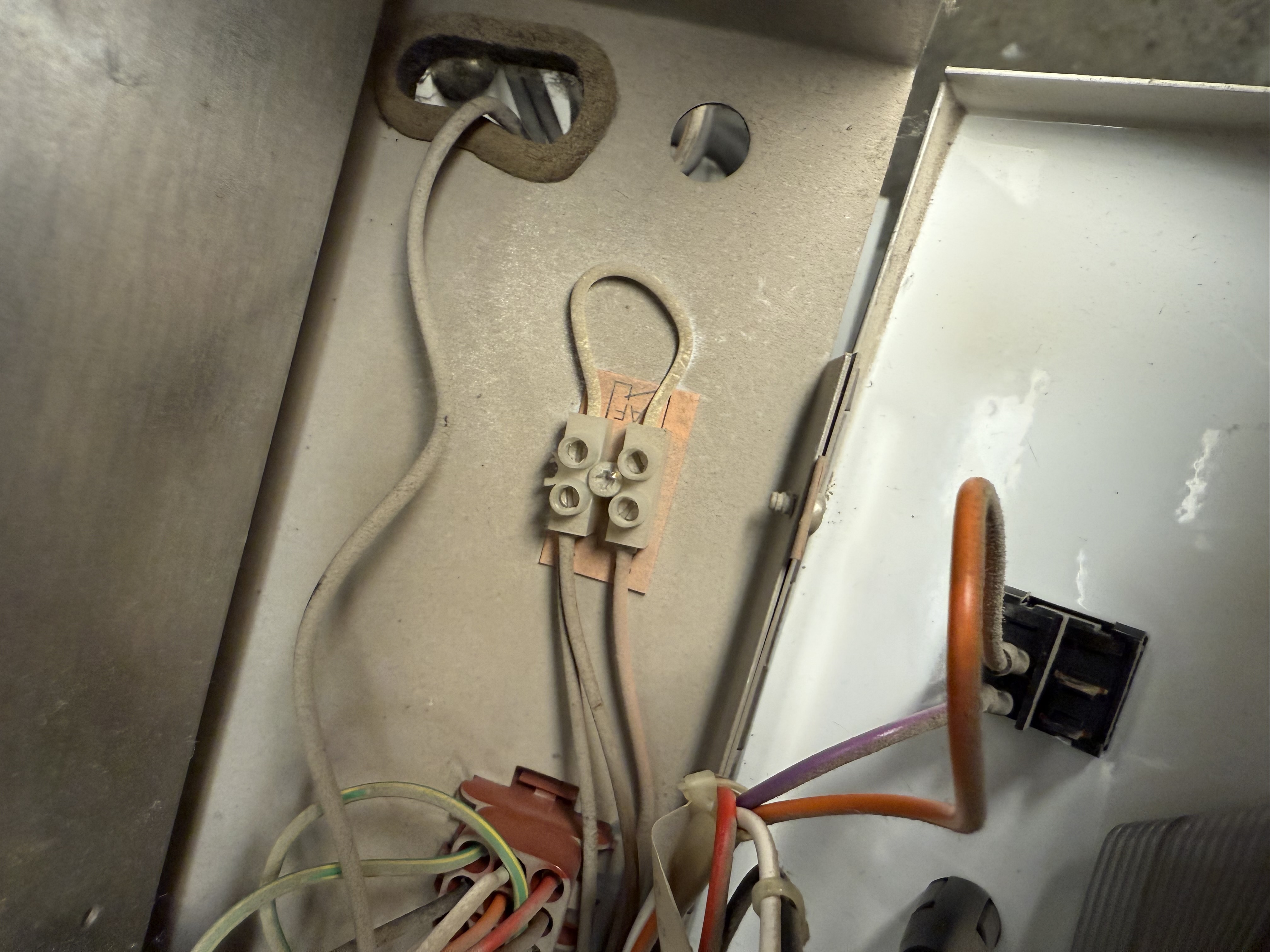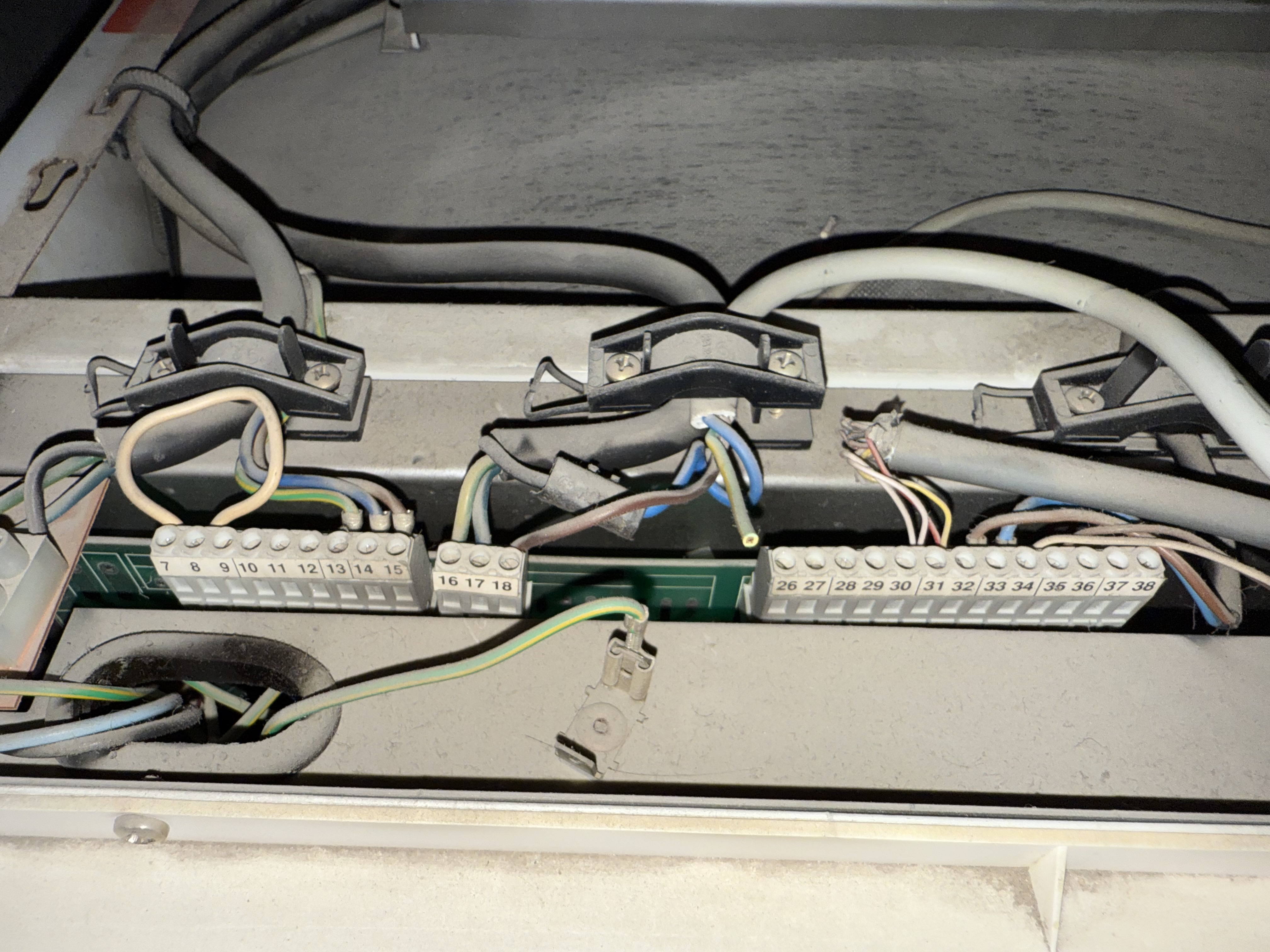 Sur les borniers 29 et 30 ils doit y avoir un pont (shunt) regardez s'il y a une petite resistance sur ce pont, et aussi s'il y a un fils sur le bornier 28