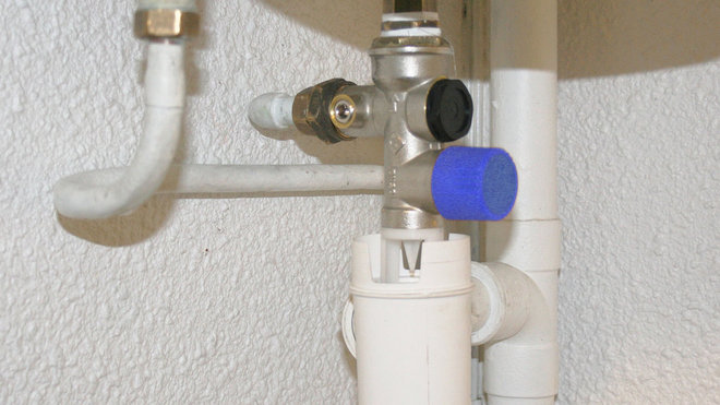 Lorsque le groupe de sécurité coule, l’eau tombe dans le gobelet du siphon tout en gardant une lame d’air. Si les égouts se bouchent l’eau va remonter et déborder du gobelet du siphon, sans donner la possibilité aux bactéries de passer dans l’eau potable.
