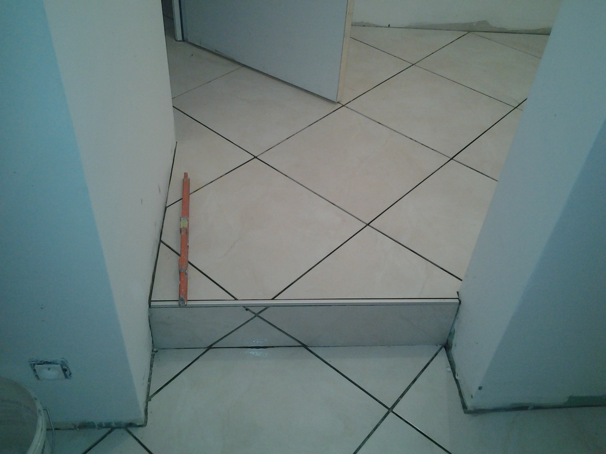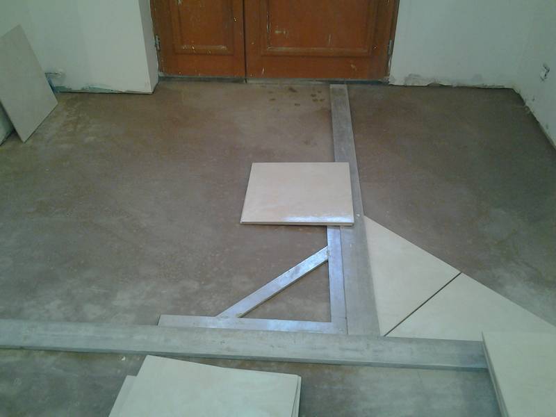 Il est bien souvent difficile de démarrer soit parce que la pièce, n’est pas droite soit parce que l’on veut un carreau entier ou une coupe telle ou telle part. En ce qui concerne cet exemple j’ai démarré a la porte d’entrée avec un carreau entier, tout en faisant attention a avoir des coupes identiques dans la maison.