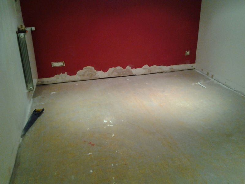 Dans l’image suivante on aperçois le doublage légèrement humide, or l’humidité ambiante du sol (une cave) remonte par capillarité sur les plaques .