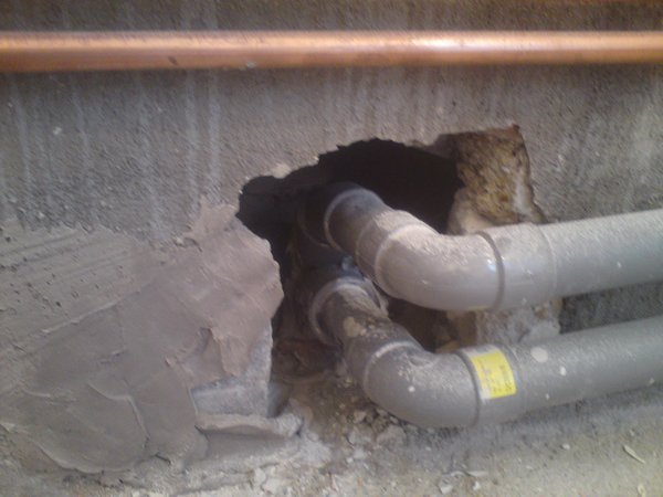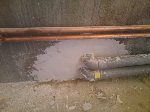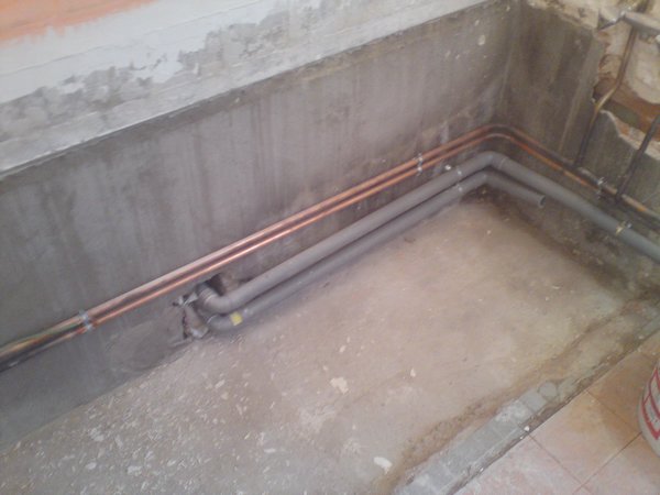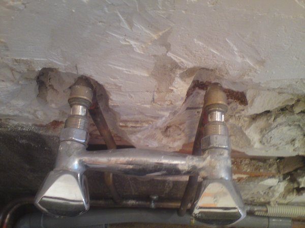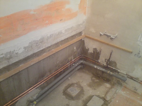 lorsque j’ai commencé a démolir, je me suis aperçu que les tuyaux d’alimentation d’eau passaient juste devant la baignoire, histoire de faciliter les choses.