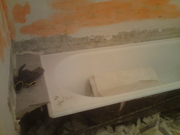 La pose de la baignoire