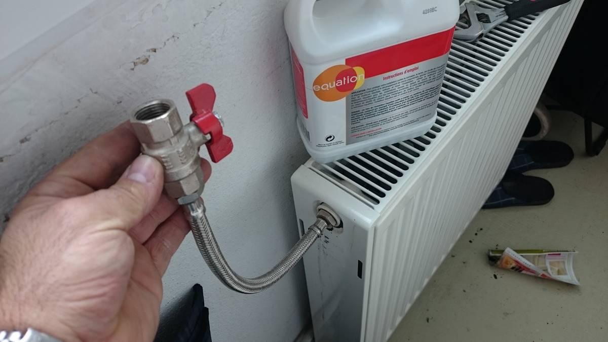 Il y a très peut d’installations individuelles munies d’un point d’injection du produit, donc le plus simple consiste a injecter ce produit sur un radiateur.